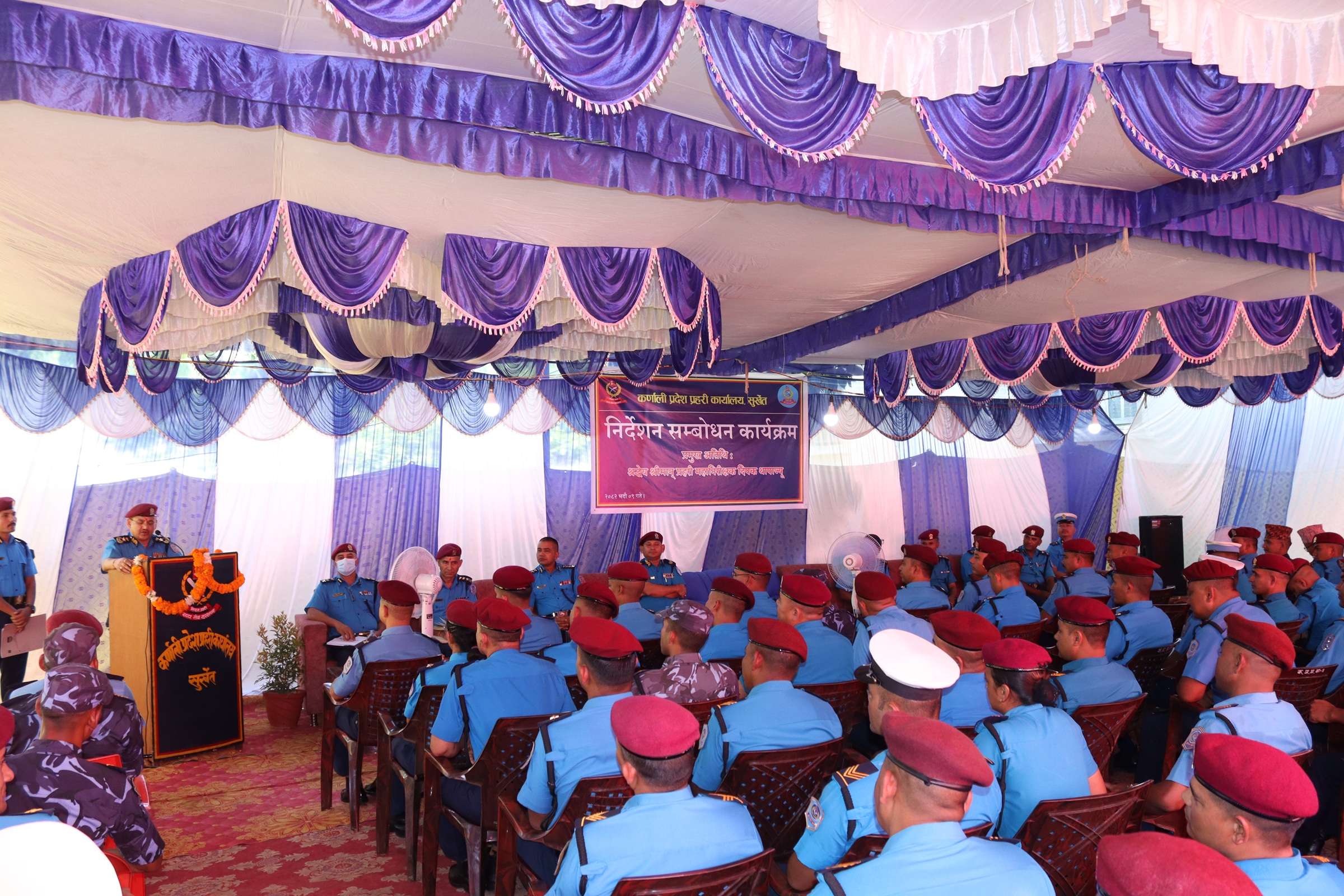 निरीक्षण पश्चात आयोजित कार्यक्रममा उपस्थित प्रहरी कर्मचारीहरूलाई निर्देशन दिँदै प्रहरी महानिरीक्षक थापाले भौगोलिक जटिलताको बाबजुद उपलव्ध सीमित स्रोत साधन र जनशक्तिको उच्चतम उपयोग गरी समग्रमा प्रदेशस्थित शान्ति सुव्यवस्था अमन चयन कायम गर्न, अपराध नियन्त्रण तथा अनुसन्धान, विपद् एवम् ट्राफिक व्यवस्थापन लगायतका कार्यमा प्रहरी कर्मचारीहरूले देखाएको व्यावसायिकता र निर्वाह गरेको भूमिका प्रशंसनीय रहेको बताउनुभयो ।