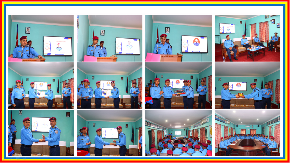 - प्र.स.नि. आधारभूत (अल्पकालिन) तालिम ४-१९० औं समूहको अन्तरक्रिया तथा समापन कार्यक्रम सम्पन्न:(२०८२ फागुन ०१ गते): मिति २०८२ का पुस १६ गतेबाट यस तालिम केन्द्रमा संचालित ३५ कार्यदिन अवधिको प्र.स.नि. आधारभूत (अल्पकालिन) तालिम ४-१९० औं समूहको आज मिति २०८२ फागुन ०१ गते यस केन्द्रका समादेशक प्रहरी वरिष्ठ उपरीक्षक गोविन्द अधिकारीज्यूको प्रमुख आतिथ्यमा अन्तरक्रिया तथा समापन कार्यक्रम सु-सम्पन्न भयो । साथै दीक्षित भई जाने प्रहरी जवानहरुलाई प्रमुख अतिथिज्यूले शुभ-कामना एवं बधाई दिंदै प्रशिक्षणका दौरानमा सिकेका सैद्धान्तिक तथा व्यवहारीक कुराहरु समाज र संगठनले अपेक्षा गरे अनुरुप अनुशासित, इमान्दारी पूर्वक कर्तव्यनिष्ठ भई कार्यक्षेत्रमा कार्यन्वयन गर्नुहुन समेत निर्देशन दिनु भयो । उक्त कार्यक्रममा यस केन्द्रका सह-समादेशक तथा तालिम संयोजक गुरू प्रसाद तिम्सिनाज्यू, प्रहरी निरीक्षकज्यूहरु, जुनियर प्रहरी अधिकृतहरु, प्रशिक्षक वर्गहरु, लगायत प्रशिक्षार्थीहरु समेतको उपस्थिति रहेको थियो ।