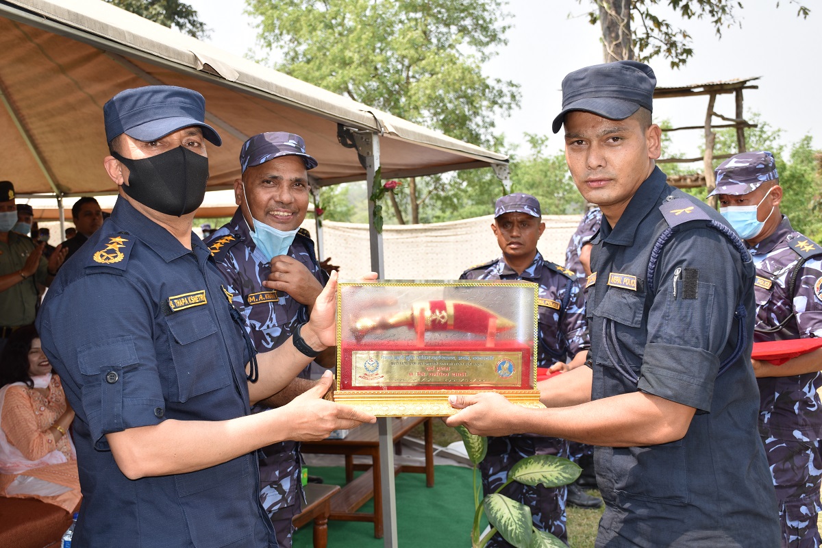 समारोहमा प्रहरी महानिरीक्षक थापा क्षेत्रीले तालिममा सहभागी प्रशिक्षार्थीहरूमध्ये तालिमको विभिन्न विधामा सर्वोत्कृष्ट स्थान हासिल गर्ने प्रशिक्षार्थीहरूलाई पुरस्कार प्रदान गर्नुभयो ।