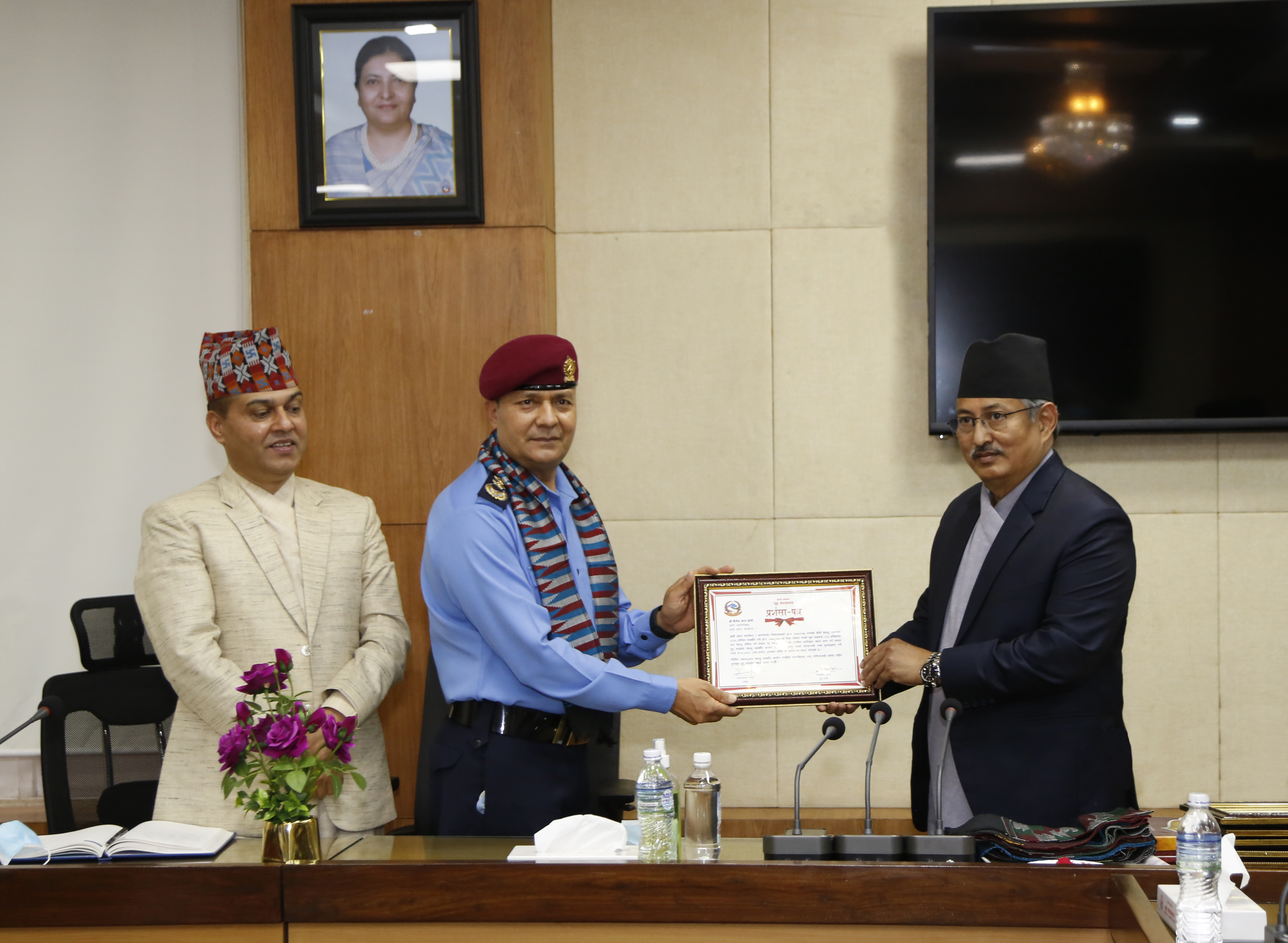 गृह मन्त्रालयमा सोमबार आयोजित कार्यक्रममा गृहमन्त्री बालकृष्ण खाणले प्रहरी महानिरीक्षक शैलेश थापा क्षेत्रीलाई नेपाल प्रहरीले बेरुजु फर्छ्यौटमा सर्वोत्कृष्ट स्थान हासिल गरेकोले नगद १० हजार रुपैयाँ पुरस्कार सहित प्रंशासापत्र प्रदान गर्नुभयो ।