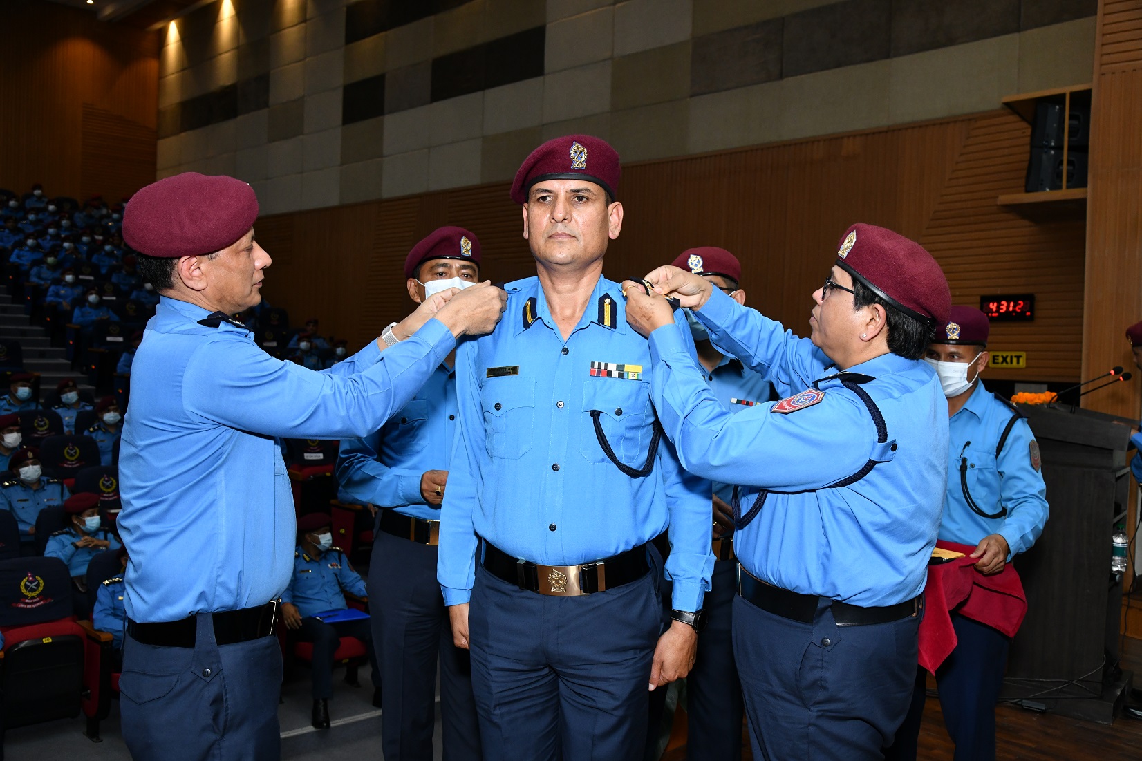 प्रहरी महानिरीक्षक धिरज प्रताप सिंहबाट ६३ जना प्रहरी अधिकृतहरूलाई दर्ज्यानी चिन्ह सुशोभन