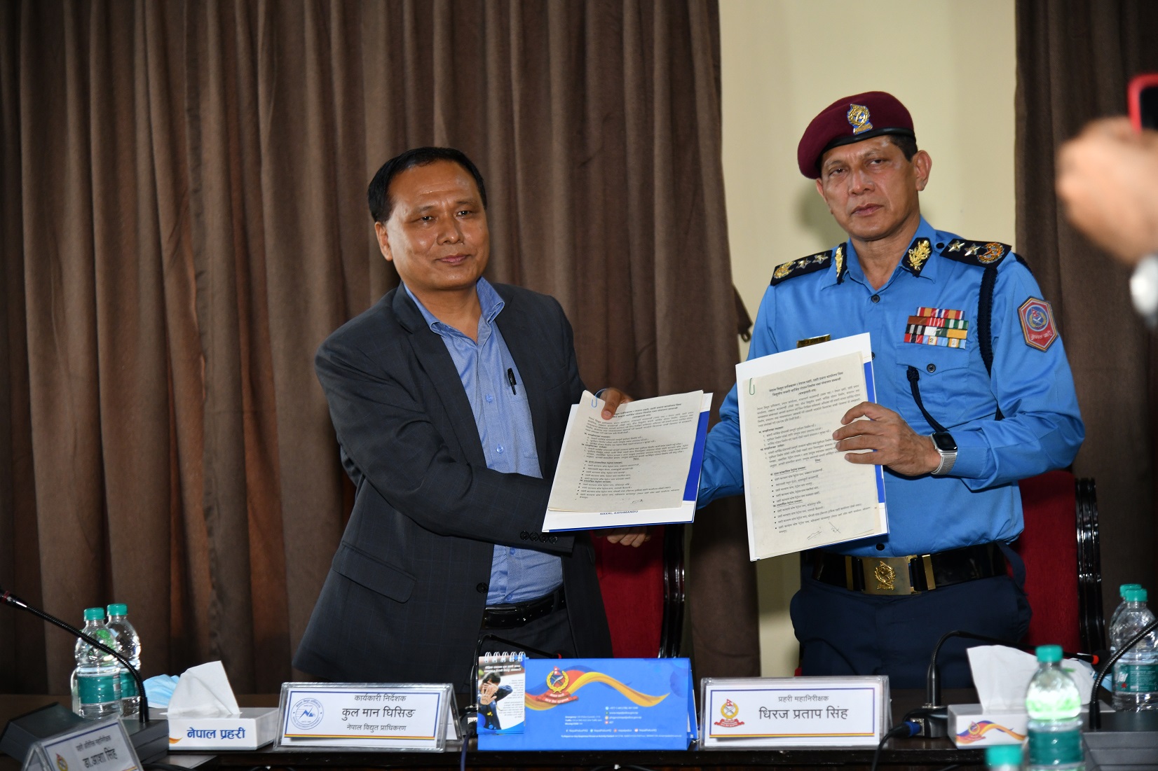 काठमाडौं, नेपाल प्रहरी प्रधान कार्यालय र नेपाल विद्युत प्राधिकरणबीच विद्युतीय सवारी चार्जिङ स्टेशन निर्माण तथा सञ्चालन सम्बन्धी समझदारीपत्रमा हस्ताक्षर भएको छ । प्रहरी महानिरीक्षक धिरज प्रताप सिंह र नेपाल विद्युत प्राधिकरणका कार्यकारी निर्देशक कुलमान घिसिङले नेपाल प्रहरी प्रधान कार्यालयमा आयोजित एक समारोहबीच सोमबार उक्त सम्झादारीपत्रमा हस्ताक्षर गर्नुभएको हो ।