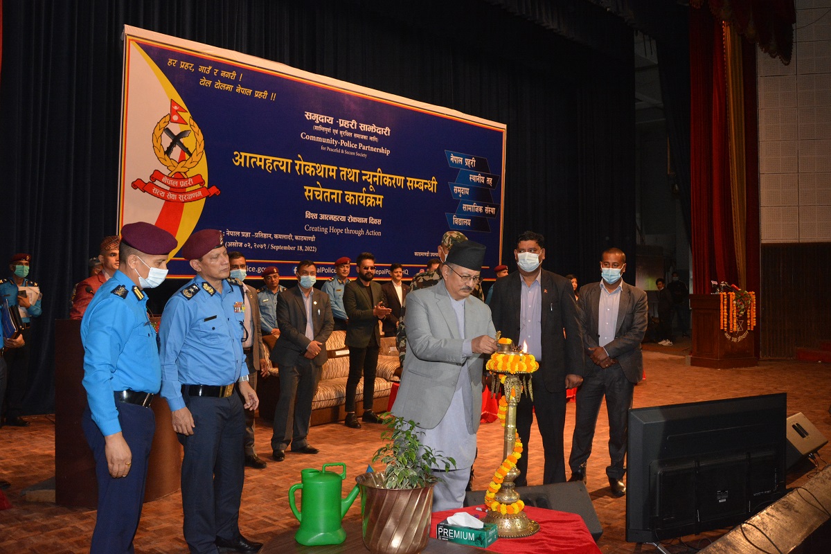 विश्वभर बढ्दो आत्महत्याको दरलाई न्यूनीकरण गर्न सर्वपक्षीय सहभागितामा आमनागरिकलाई सुसूचित गराउने उद्देश्यले सन् २०२१ देखि सन् २०२३ सम्मको लागि तय गरिएको विश्व आत्महत्या रोकथाम दिवस सम्बन्धी अन्तर्राष्ट्रिय नारा ‘कर्म मार्फत आशाको सृजना गरौं’ भन्ने मूल नाराका साथ उक्त कार्यक्रमको आयोजना गरिएको हो । साथै सातै प्रदेशको राजधानीमा प्रदेश स्तरीय र सबै जिल्ला र सदरमुकामहरूमा समेत समुदाय-प्रहरी साझेदारीको ब्यानरमा विभिन्न कार्यक्रमको आयोजना गरी आत्महत्या न्यूनीकरण सम्बन्धी सचेतना कार्यक्रम संचालन गरिएको छ ।