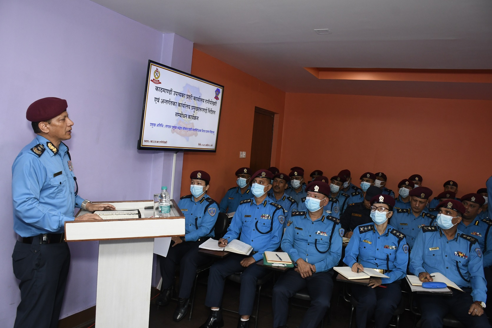 निर्देशन कार्यक्रमलाई सम्बोधन गर्दै प्रहरी महानिरीक्षक सिंहले प्रतिनिधि सभा र प्रदेश सभाको निर्वाचनमा विभिन्न असन्तुष्ट पक्षले सुरक्षा चुनौती बढाउन सक्ने भएकाले आ-आफ्नो ईलाकाको सुरक्षा चुनौतीलाई विश्लेषण गर्दै आवश्यक कार्ययोजना बनाई सुरक्षा व्यवस्था मजवुत बनाउनुपर्ने बताउनुभयो । निर्वाचनको सुरक्षा संवेदनशिल विषय भएकोले आपराधिक घटना रोकथाम तथा न्यूनीकरणका लागि सुरक्षा योजना अनुसार सर्च अपरेशन बढाई गुण्डागर्दी, घरेलु हतियारको प्रयोग, डान्सबार तथा क्लवहरू लगाएतमा हुन सक्ने ग्याङफाइटहरूलाई पूर्णरूपमा नियन्त्रण गर्न उहाँले निर्देशन दिनुभयो । काठमाडौं उपत्यकाको प्रहरी देशकै रोल मोडेलको रुपमा रहेकाले प्रहरीको आचरण तथा व्यवहारमा उत्कृष्ट ढंगले प्रदर्शन गरी सवै सेवाग्राहीलाई समान व्यवहार गर्न पनि उहाँले निर्देशन दिनुभयो ।