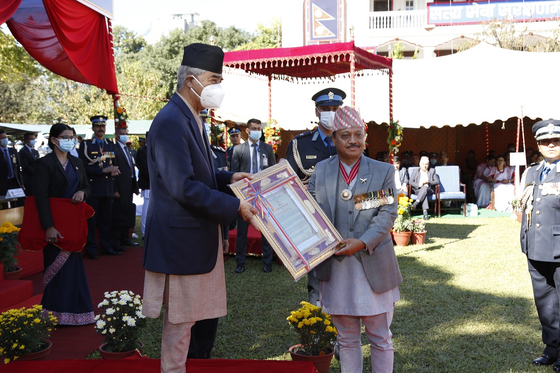 समारोहमा प्रधानमन्त्री देउवाले नेपाल प्रहरी कार्यदक्षता मुल्याङ्कन (Police Baton) २०७९ अन्तर्गत अन्तर प्रदेश प्रहरी कार्यदक्षता मुल्याङ्कन (Police Baton) २०७९ तर्फ सर्वोत्कृष्ट हुन सफल १ नम्बर प्रदेश प्रहरी कार्यालय मोरङका प्रमुख प्रहरी नायव महानिरीक्षक सुदिप गिरीलाई प्रहरी व्याटन प्रदान गर्नुभयो ।
