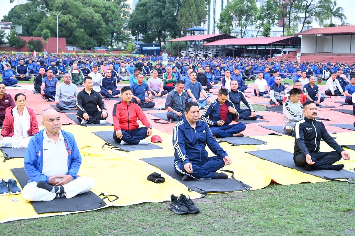 काठमाडौं, नवौं अन्तर्राष्ट्रिय योग दिवसको अवसरमा उपप्रधानमन्त्री एवम् गृहमन्त्री नारायणकाजी श्रेष्ठको प्रमुख आतिथ्यमा नेपाल प्रहरी प्रधान कार्यालयमा सोमबार एक दिवसीय योग विज्ञान शिविर २०८० तथा उत्प्रेरणा कार्यक्रम सम्पन्न भएको छ ।