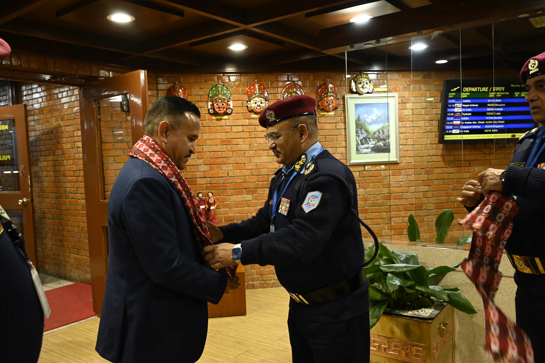 उक्त टोलीलाई प्रहरी अतिरिक्त महानिरीक्षकहरू, प्रहरी नायव महानिरीक्षकहरू लगायत वरिष्ठ प्रहरी अधिकृतहरूले त्रिभुवन अन्तर्राष्ट्रिय विमानस्थल गौचरमा हार्दिक स्वागत गर्नुभयो ।