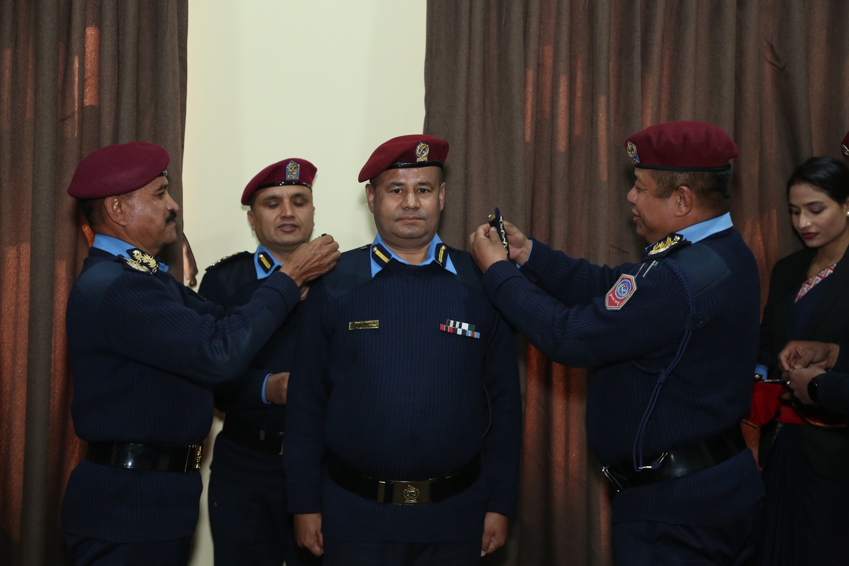 काठमाडौं, नेपाल सरकार उपप्रधानमन्त्री तथा गृहमन्त्रीस्तरको माघ १६ गतेको निर्णयले प्रहरी उपरीक्षकबाट प्रहरी वरिष्ठ उपरीक्षक पदमा पदोन्नति हुनुभएका रमेश कुमार बस्नेत दर्ज्यानी चिन्हद्वारा सुशोभित हुनुभएको छ ।