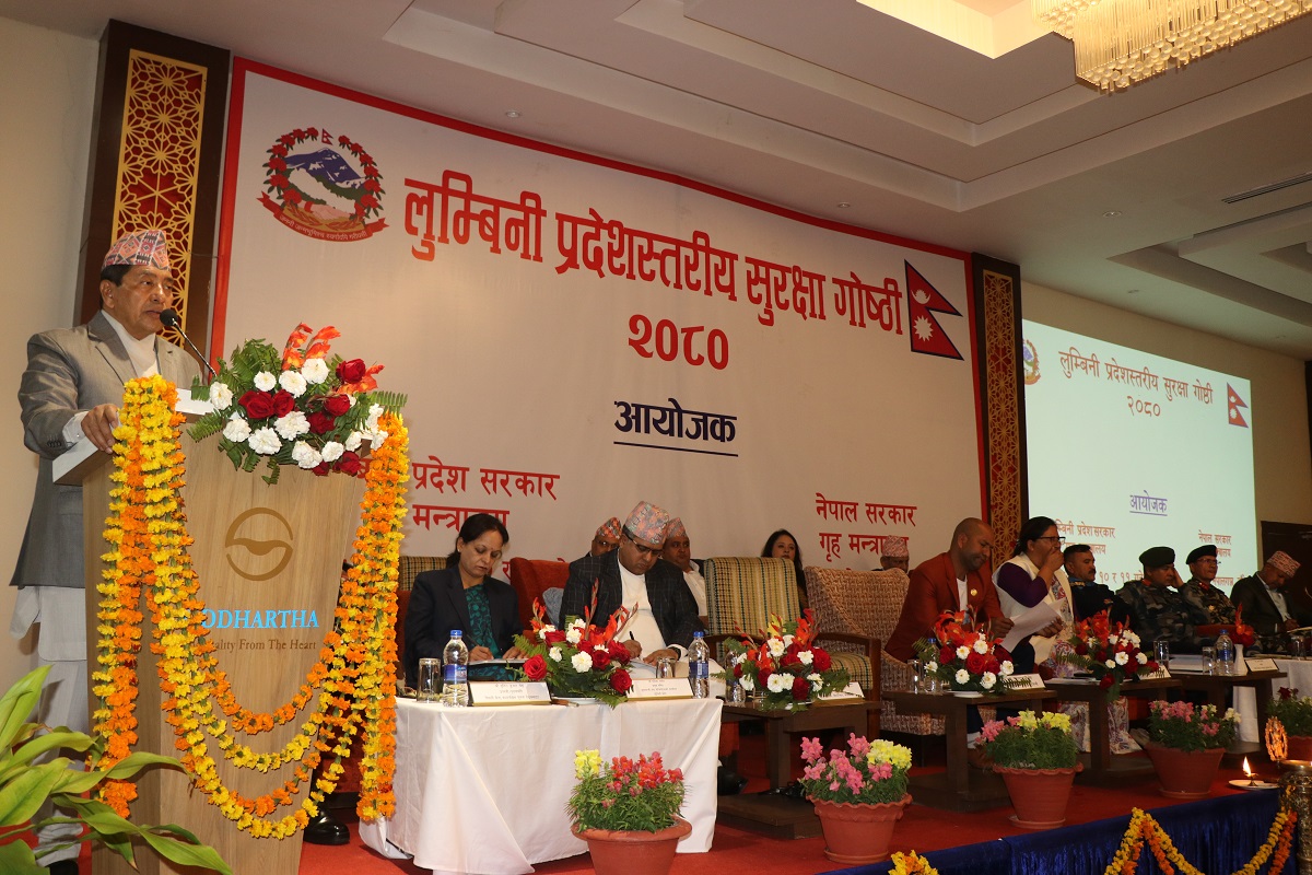 गृह सचिव दिनेश भट्टराई, लुम्बिनी प्रदेश सरकार र गृह मन्त्रालयका मन्त्री सन्तोष कुमार पाण्डेयले शुभकामना मन्तव्य व्यक्त गर्नुभएको उक्त कार्यक्रममा लुम्बिनी प्रदेश सरकार, गृह मन्त्रालयका सचिव लालबाबु कवारीले स्वागत मन्तव्य तथा गोष्ठीको उदेश्य सम्बन्धी जानकारी दिनुभएको थियो ।
