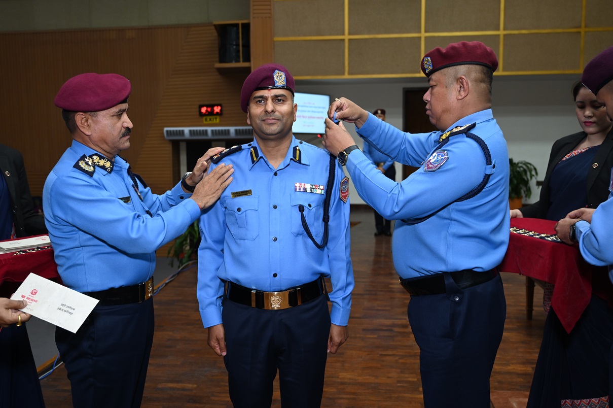 दर्ज्यानी चिन्हद्वारा सुशोभित हुनेहरूमा प्रहरी नायव उपरीक्षकबाट प्रहरी उपरीक्षक पदमा पदोन्नति भएका ढकेन्द्र खतिवडा, अंगुर जिसी, यादब ढकाल, सन्तोष तामाङ्ग, श्याम बाबु ओलिया, निरन्जन दत्त भट्ट, राजन लिम्बु, बिनोद घिमिरे र प्राविधिकतर्फका कमला लामा रहनुभएको छ । यसै गरी प्रावधिकतर्फ प्रहरी निरीक्षकबाट प्रहरी नायव उपरीक्षक पदमा पदोन्नति भएका लक्ष्मी थापा, नितिन लाखे, चेत नारायण ज्ञवाली र सोम प्रसाद पंगेनी रहनुभएको छ ।