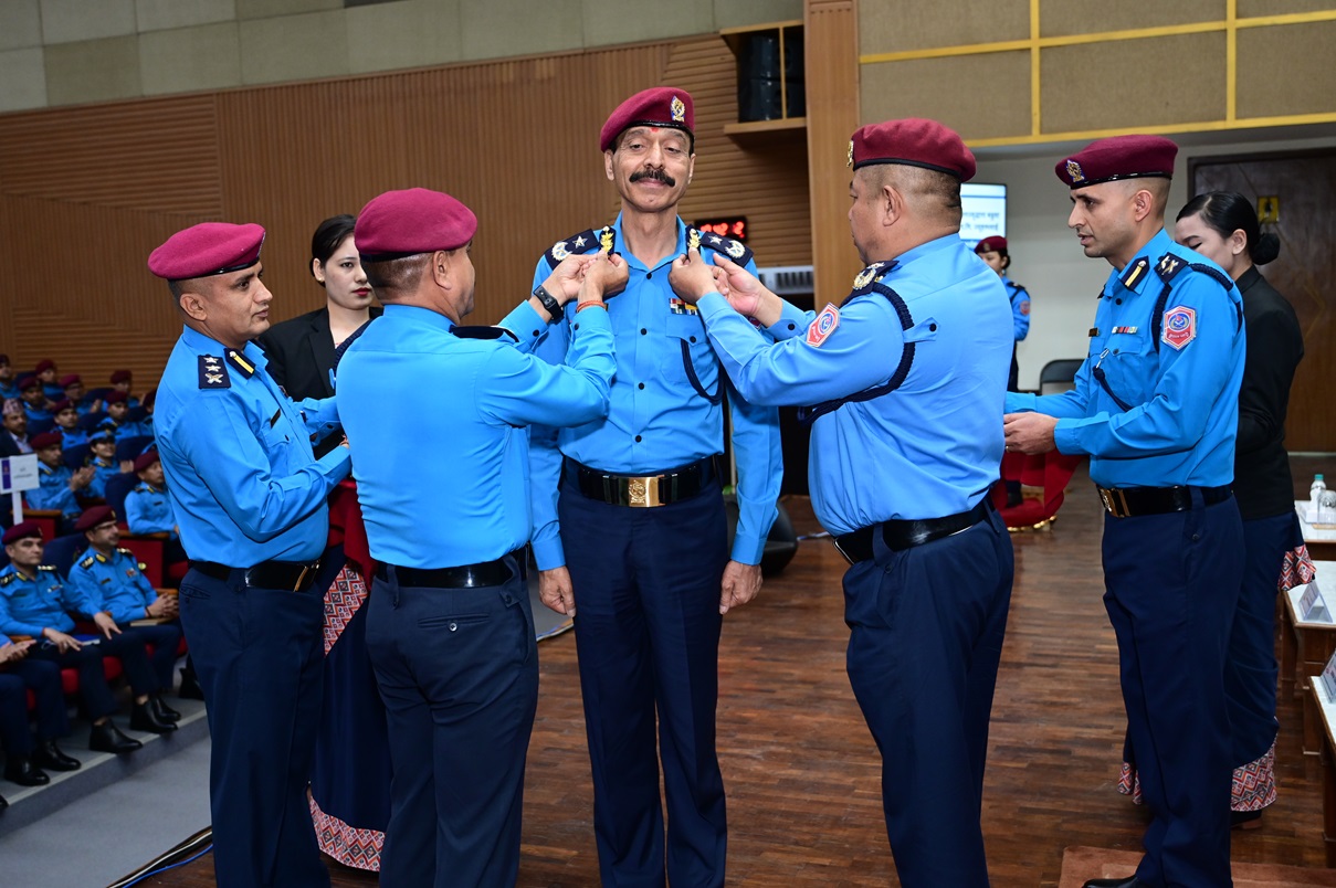 प्रहरी महानिरीक्षक बसन्त बहादुर कुँवरले नेपाल प्रहरी प्रधान कार्यालयमा आइतबार आयोजित विशेष समारोहबीच उहाँहरूलाई दर्ज्यानी चिन्हद्वारा सुशोभन गर्नुभएको हो । नेपाल सरकार मन्त्रिपरिषद्को २०८१ वैशाख २७ गतेको निर्णयअनुसार प्रहरी नायव महानिरीक्षकबाट प्रहरी अतिरिक्त महानिरीक्षक पदमा जोशी र ढकाल तथा नेपाल सरकार उपप्रधानमन्त्री एवं गृहमन्त्रीस्तरको २०८१ वैशाख २३ गतेको निर्णयअनुसार प्राविधिक प्रहरी वरिष्ठ उपरीक्षकबाट प्राविधिक प्रहरी नायव महानिरीक्षक पदमा गुरूङ र अर्याल गरी ४ जना वरिष्ठ प्रहरी अधिकृतहरू पदोन्नति हुनुभएको थियो ।