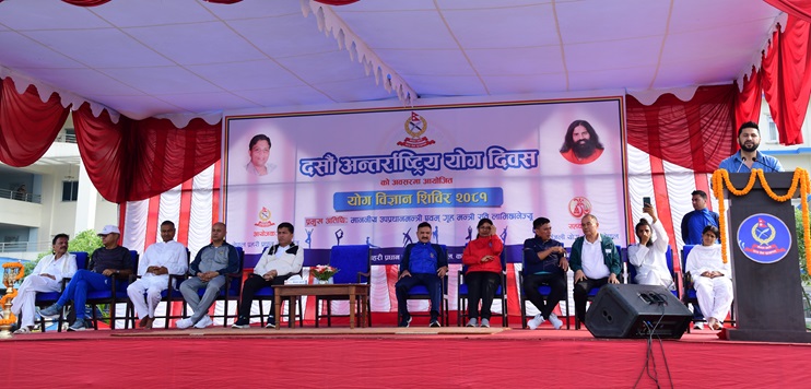 काठमाडौं, दशौं अन्तर्राष्ट्रिय योग दिवसको अवसरमा उपप्रधानमन्त्री एवम् गृहमन्त्री रवि लामिछानेको प्रमुख आतिथ्यमा पतंजली योग समिति नेपालसँगको सहकार्यमा नेपाल प्रहरीद्वारा आयोजित एक दिवसीय योग विज्ञान शिविर, २०८१ कार्यक्रम नेपाल प्रहरी प्रधान कार्यालयमा बुधबार सम्पन्न भएको छ ।