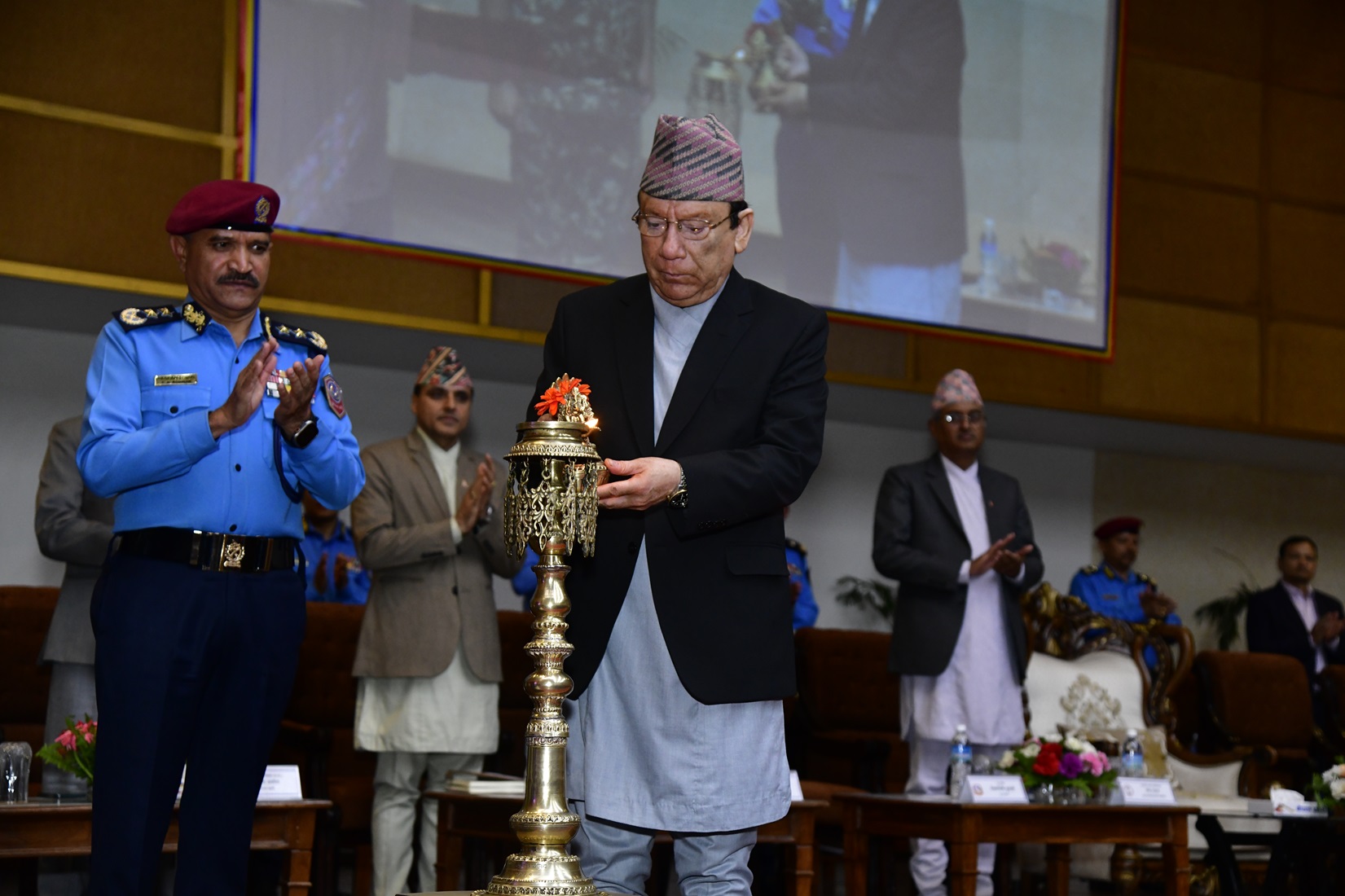 गोष्ठी उद्घाटन पश्चात प्रधान न्यायाधीश प्रकाशमान सिंह राउतले नेपाल प्रहरी प्रधान कार्यालय अपराध अनुसन्धान विभागद्वारा प्रकाशित नेपाल प्रहरीले अनुसन्धान गरेका चर्चित घटनाहरूको संग्रह भाग-२ विमोचन गर्नुभयो ।