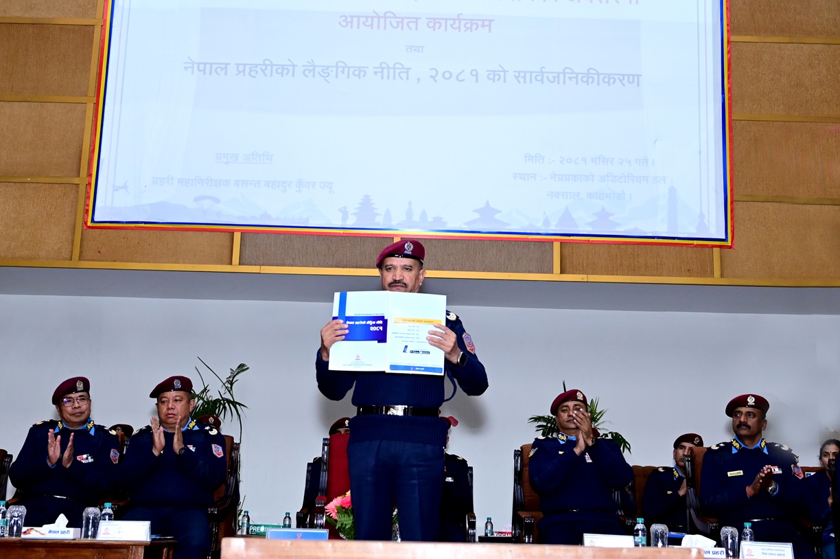 सो अवसरमा प्रहरी महानिरीक्षक कुँवरले नेपाल प्रहरी प्रधान कार्यालयबाट जारी भएको ‘नेपाल प्रहरी लैंगिक नीति २०८१’ को सार्वजनिकिकरण गर्नुभयो । साथै उहाँले लैंगिक हिंसा न्यूनीकरणमा नेपाल प्रहरीबाट भएका प्रयासहरू बारे तयार पारिएको वृत्तचित्र समेत शुभारम्भ गर्नुभयो ।