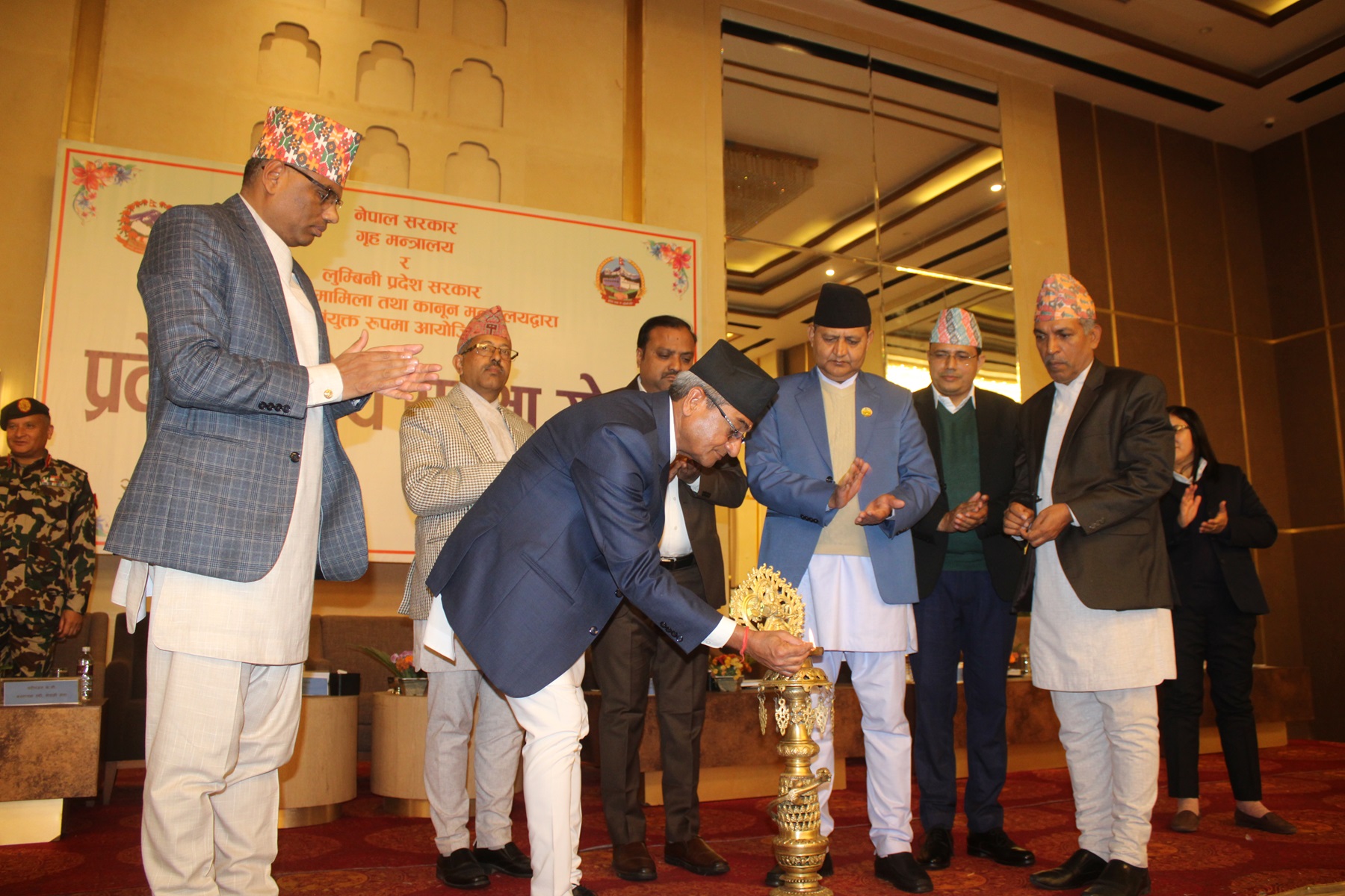गृहमन्त्री रमेश लेखकको प्रमुख आतिथ्यमा लुम्बिनी प्रदेशस्तरीय सुरक्षा गोष्ठी सम्पन्न