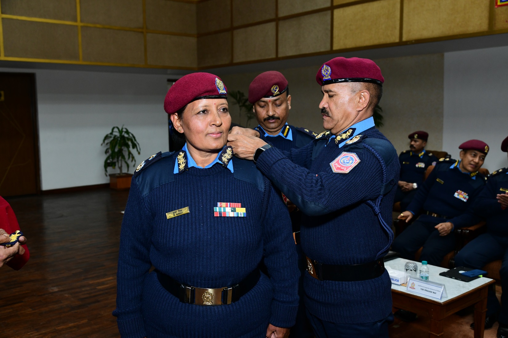 दर्ज्यानी चिन्हद्वारा सुशोभित हुनेहरूमा प्रहरी नायव महानिरीक्षकबाट प्रहरी अतिरिक्त महानिरीक्षक पदमा पदोन्नति हुनुभएका प्रहरी अतिरिक्त महानिरीक्षकद्वय दुर्गा सिंह र भरत बहादुर बोहरा तथा प्राविधिक प्रहरी नायव उपरीक्षकबाट प्राविधिक प्रहरी उपरीक्षक पदमा पदोन्नति हुनुभएका प्राविधिक प्रहरी उपरीक्षकहरू डा. राम प्रसाद शर्मा, डा. नविन लागेजु, डा. समृद्धि कार्की, डा. अन्जली तण्डुकार र प्रदिन ताम्राकार रहनुभएको छ ।