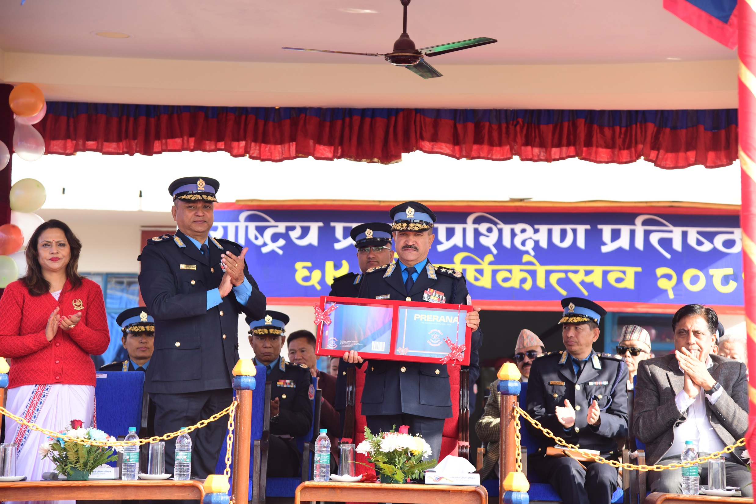 सो अवसरमा प्रहरी महानिरीक्षक कुँवरले राष्ट्रिय प्रहरी प्रशिक्षण प्रतिष्ठान महाराजगंजद्वारा प्रकाशित ‘प्रेरणा-२०८१’ को लोकार्पण तथा प्रतिष्ठान गित सार्वजनिकीकरण समेत गर्नुभयो । साथै उहाँले रस्साकस्सी खेल तथा महिला प्रहरी कर्मचारीहरूको दौड प्रतियोगिताका विजेतालाई पुरस्कार समेत प्रदान गर्नुभयो ।