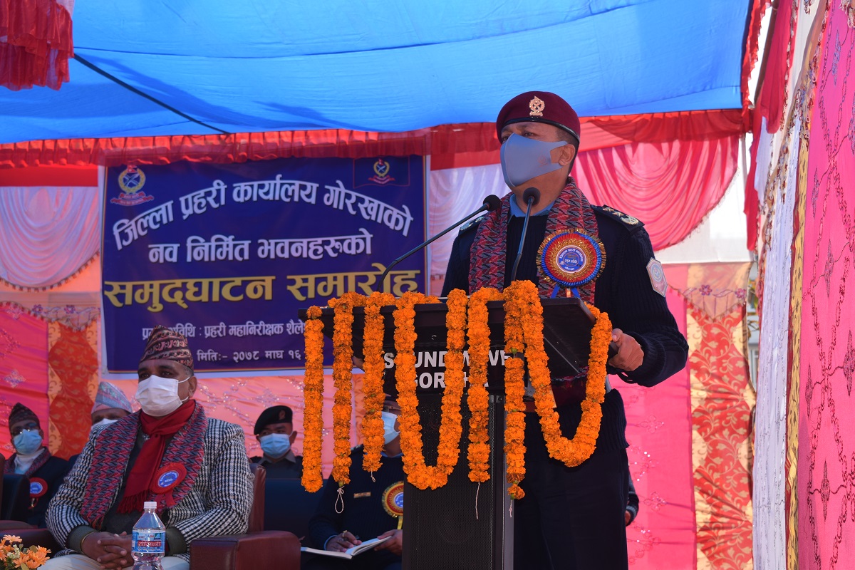 जिल्ला प्रहरी कार्यालय गोरखा परिसरमा नवनिर्मित कार्यालय भवन, हिरासत, कार्यालय प्रमुख निवास, प्रहरी कर्मचारीहरुको लागि व्यारेक भवन, मेस भवन र सिनियर अधिकृत आवास भवनको आइतबार आयोजित एक कार्यक्रमबीच उद्घाटन गर्दै प्रहरी महानिरीक्षक थापा क्षेत्रीले उक्त कुरा बताउनुभएको हो ।