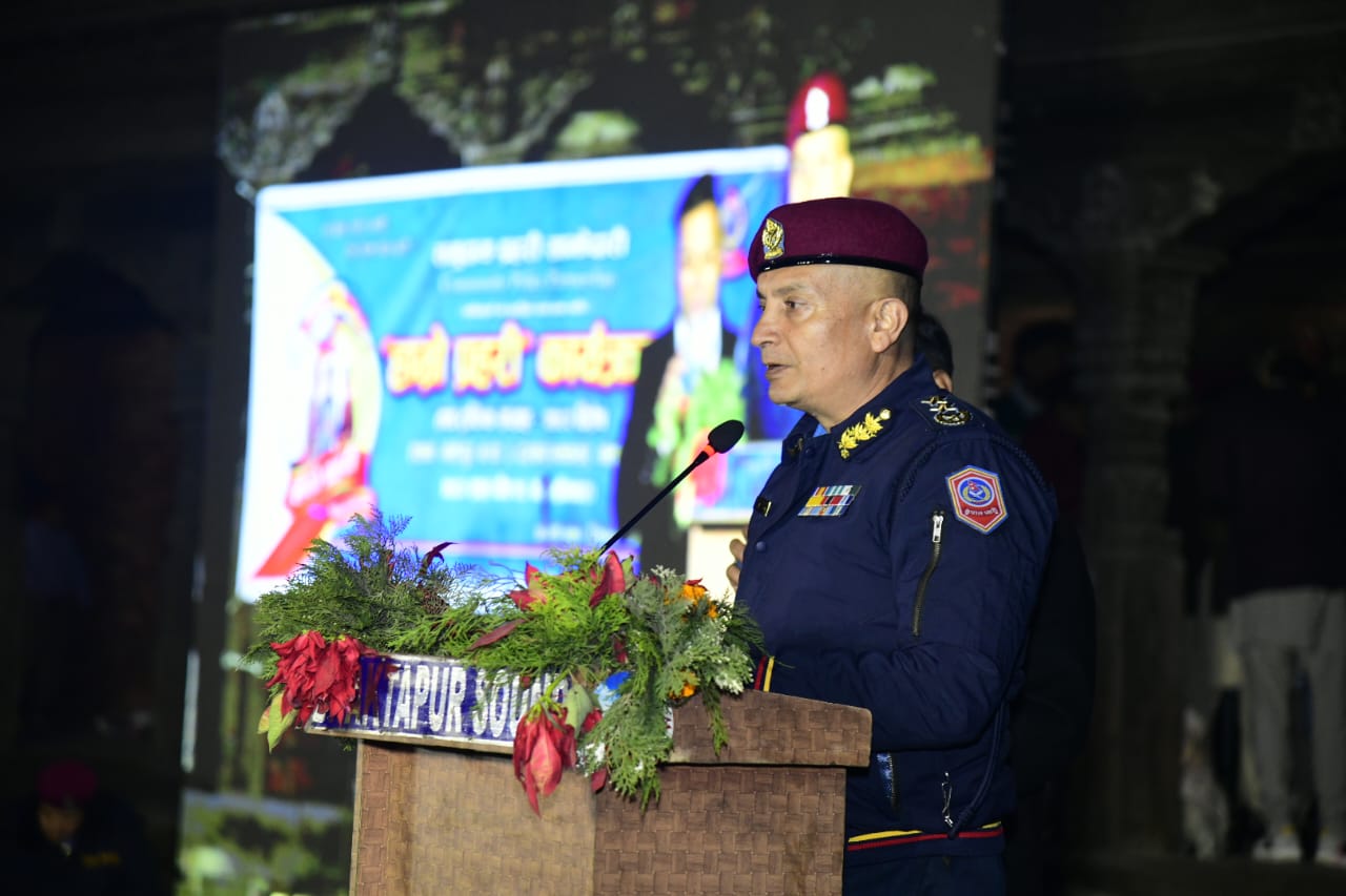 जिल्ला प्रहरी परिसर भक्तपुरको आयोजनामा भक्तपुरको दरबार स्क्वायरमा सोमबार आयोजित समारोह बिच ‘हाम्रो प्रहरी’ कार्यक्रम तथा ट्राफिक सप्ताह-२०८२ विशेषलाई सम्बोधन गर्दै प्रहरी महानिरीक्षक कार्कीले उक्त कुरा बताउनुभएको हो ।