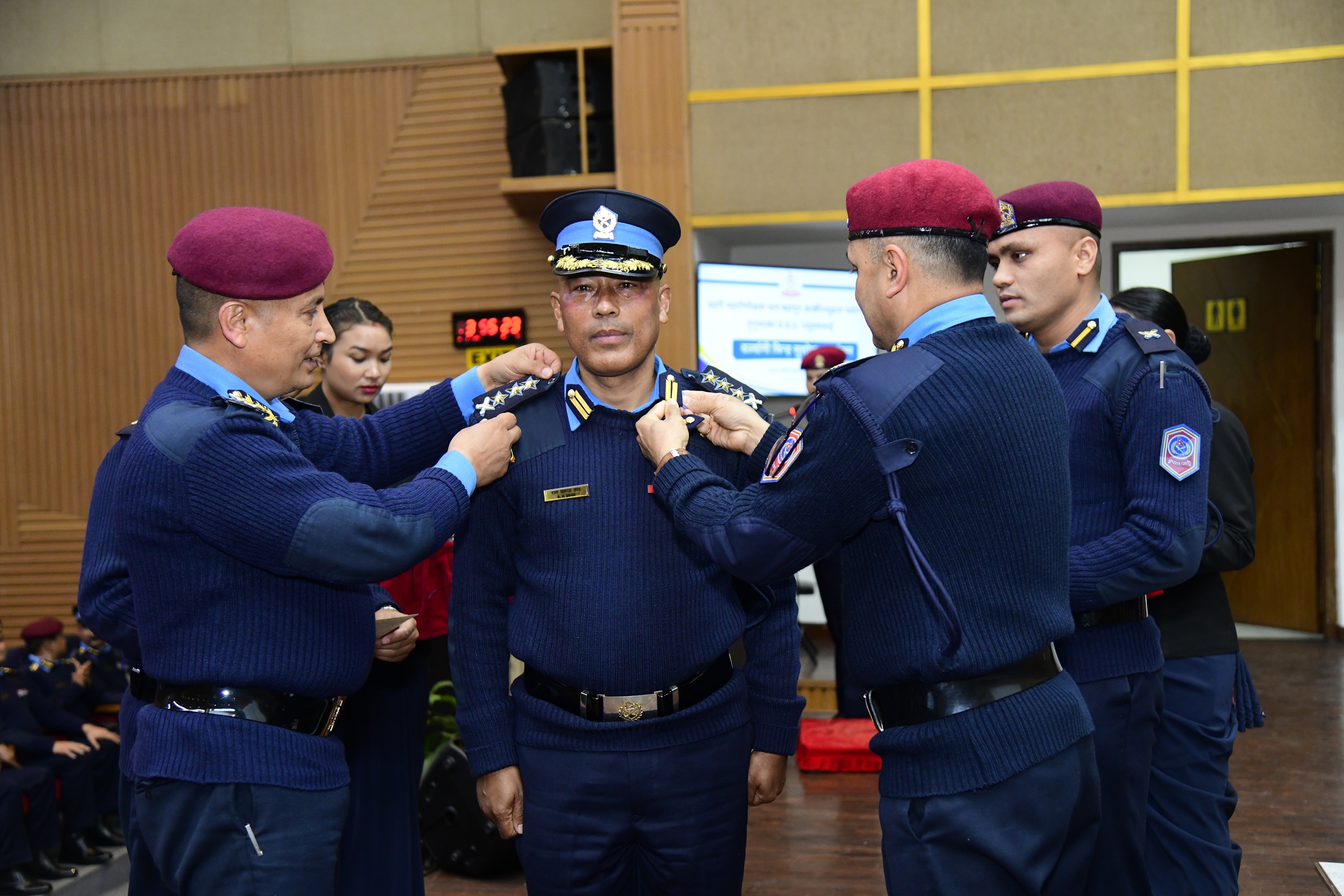 काठमाडौं, नेपाल सरकार गृहमन्त्रीस्तरको २०८२ माघ २ गतेको निर्णयअनुसार प्रहरी उपरीक्षकबाट प्रहरी वरिष्ठ उपरीक्षक पदमा पदोन्नति हुनुभएका १० जना प्रहरी वरिष्ठ उपरीक्षकहरू दर्ज्यानी चिन्हद्वारा सुशोभित हुनुभएको छ ।