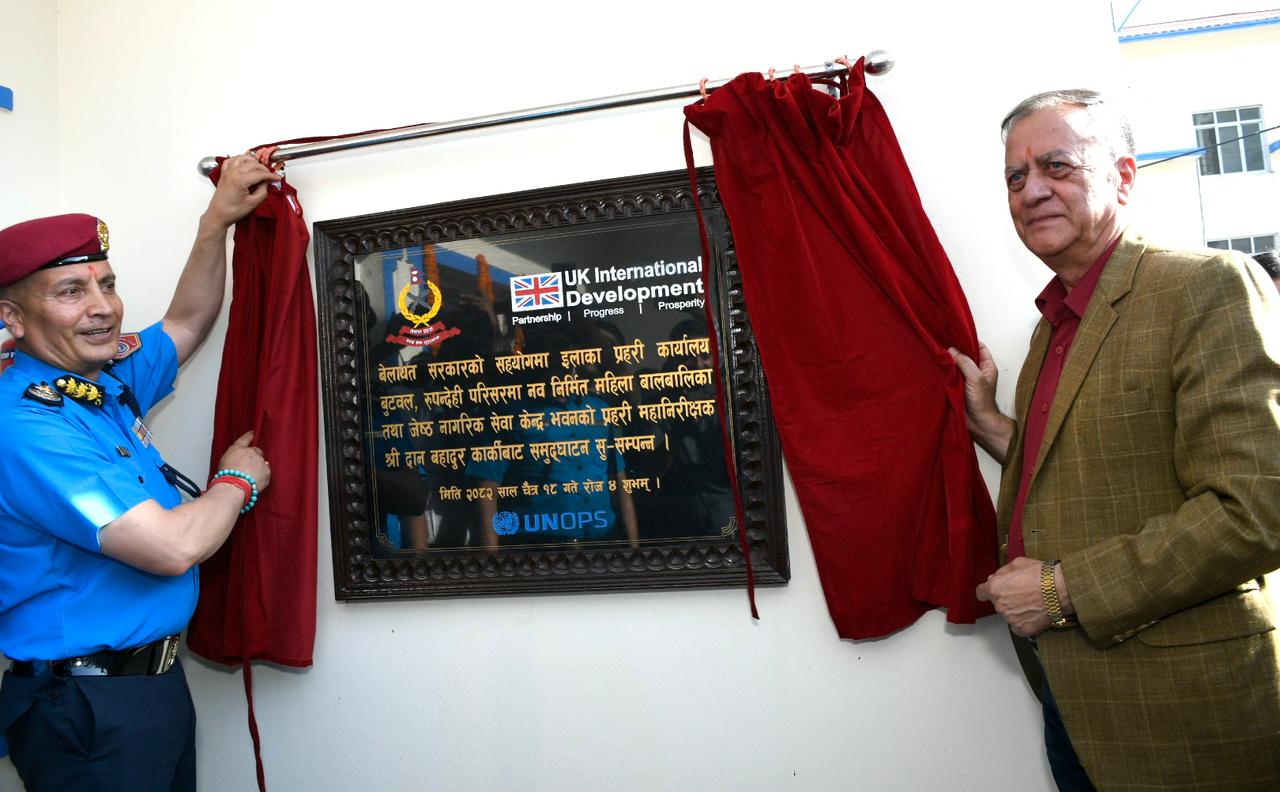 रूपन्देही, प्रहरी महानिरीक्षक दान बहादुर कार्कीले इलाका प्रहरी कार्यालय बुटवलको परिसरमा नवनिर्मित महिला बालबालिका तथा ज्येष्ठ नागरिक सेवा केन्द्रको कार्यालय भवनको बुधबार आयोजित एक कार्यक्रमबीच उद्घाटन गर्नुभएको छ ।