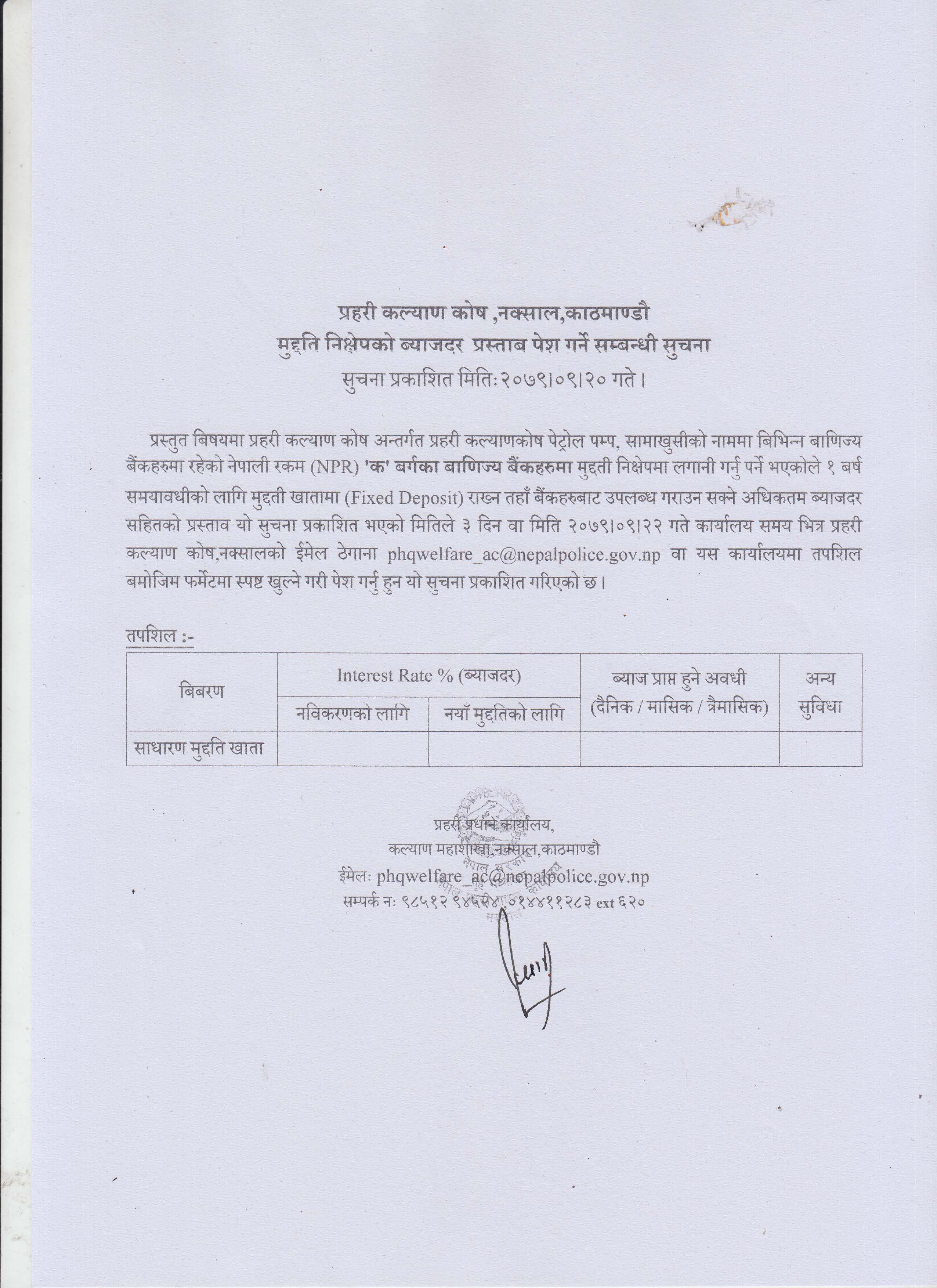 मुद्दति निक्षेपको व्याजदर प्रस्ताब पेश गर्ने सम्बन्धी सूचना (२०७९-०९-२०)