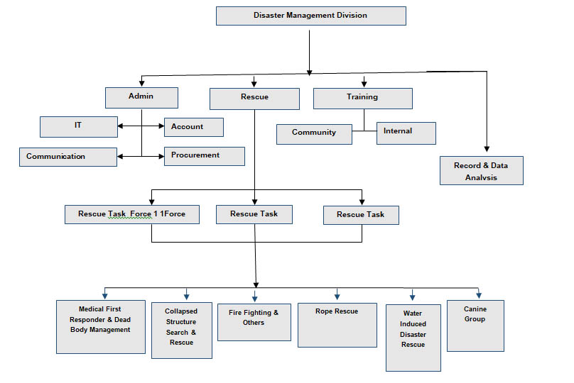 कुनै पनि विनाशकारी घटनाको अवस्थामा सम्बन्धित उद्धार टोलीहरू (भत्केको संरचना खोज तथा उद्धार, फायर फायटिङ, प्राथमिक उपचार र शव व्यवस्थापन, डोरी द्वारा गरीने उद्धार, पानी प्रेरित प्रकोप उद्धार) खटाउनको लागि जोखिम विशिष्ट उद्धार उपकरण ,स्रोतहरू खरिद र व्यवस्थापन गर्ने ।