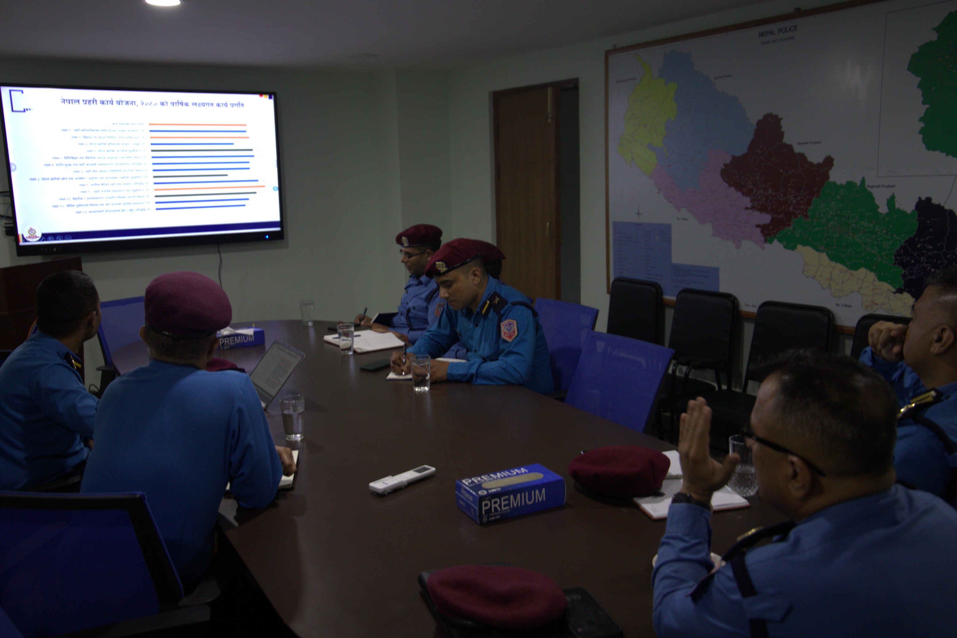 नेपाल प्रहरी कार्ययोजना-२०८० तथा कार्य सम्पादन सम्झौता (आ.व. २०८०/०८१) वार्षिक समीक्षा र आ.व २०८०/०८१ को कार्यसम्पादन सम्झौताको तयारीको क्रममा अधिकृतहरू