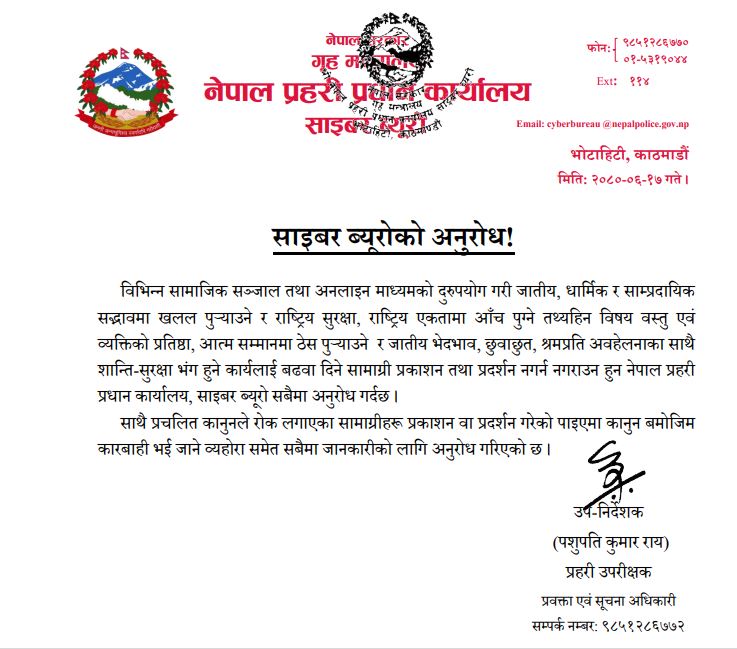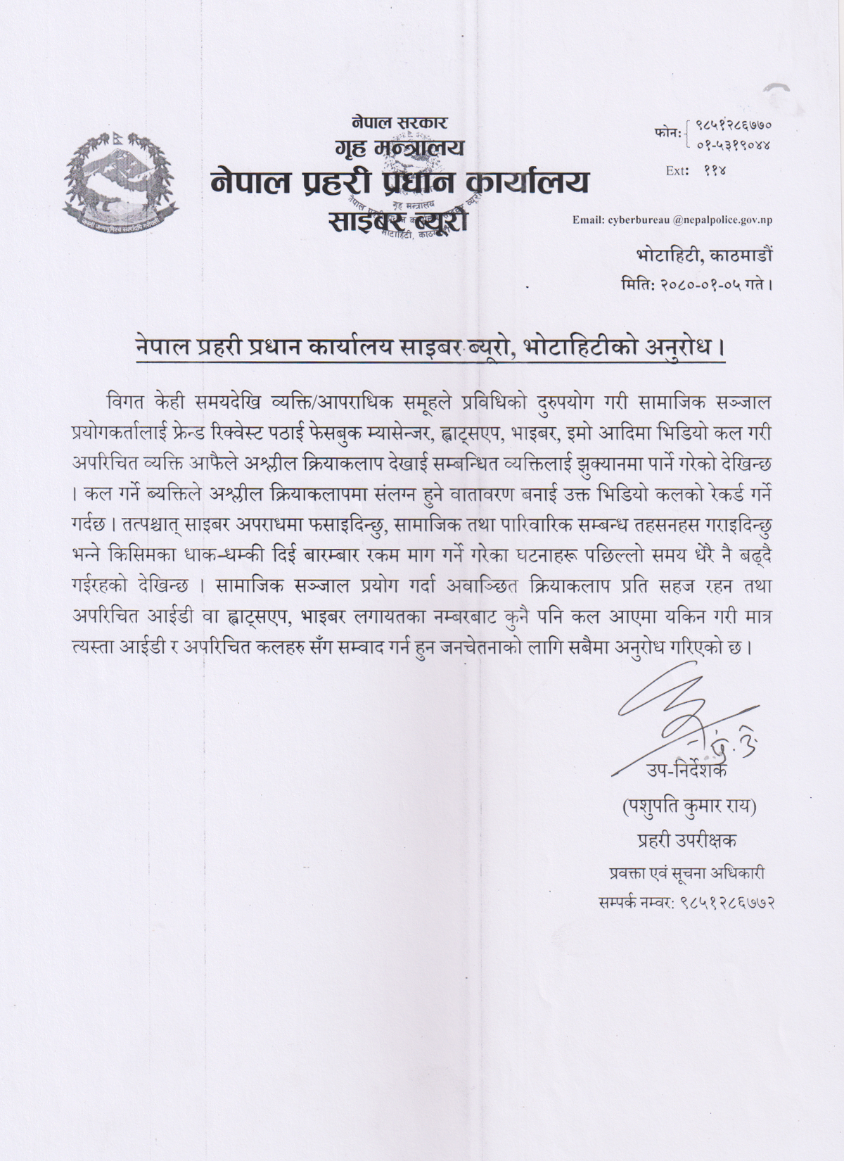 - साइबर ब्यूरोको अनुरोध !!! (२०८०-०८-१८)