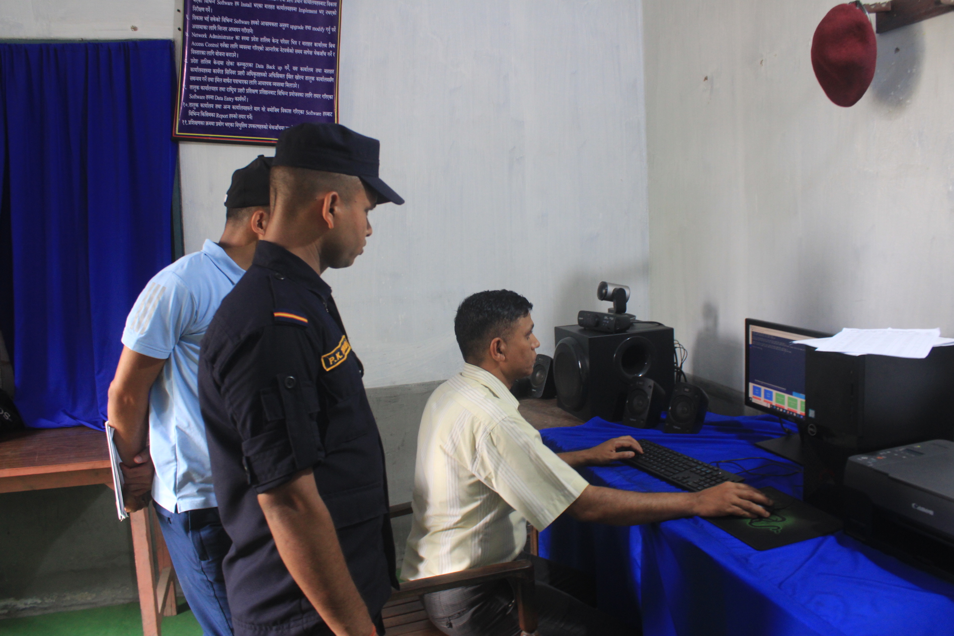 तालुक राष्ट्रिय प्रहरी प्रशिक्षण प्रतिष्ठान,महाराजगञ्जबाट अनुगमन निरीक्षणभ्रमणको शिलशिलामा पाल्नु भएका प्र.ना.उ. सुनिल कुमार बरनवालज्यूले यस केन्द्रको घुम्ती शाखा र सूचना प्रविधि शाखाको निरीक्षण तथा अनुगमन गर्नु भई यस केन्द्रमा कार्यरत प्रहरी कर्मचारीहरूलाई IT Security र सहजयोगा सम्बन्धी अनुशिक्षण समेत दिनुभएको थियो ।