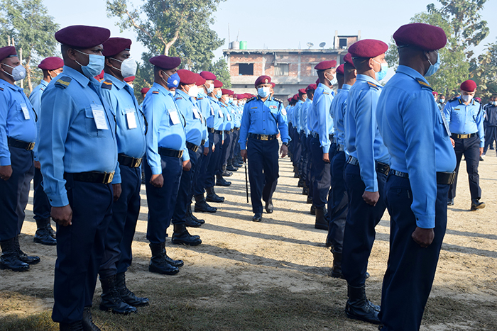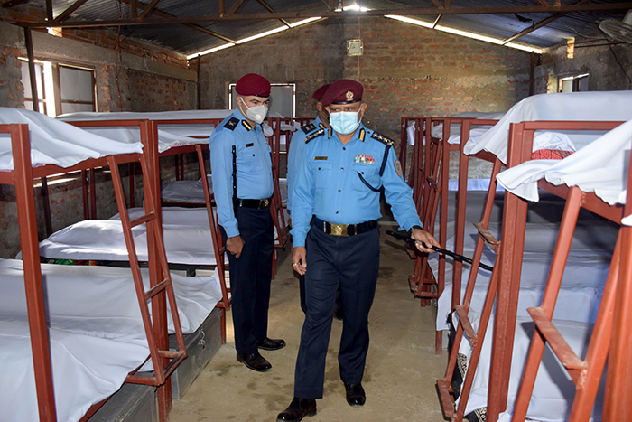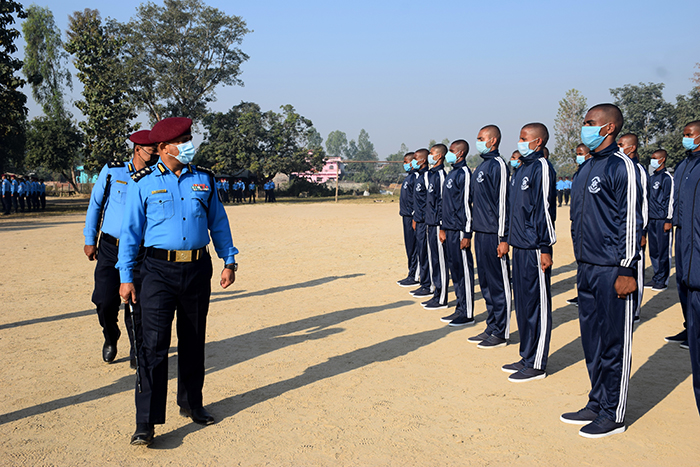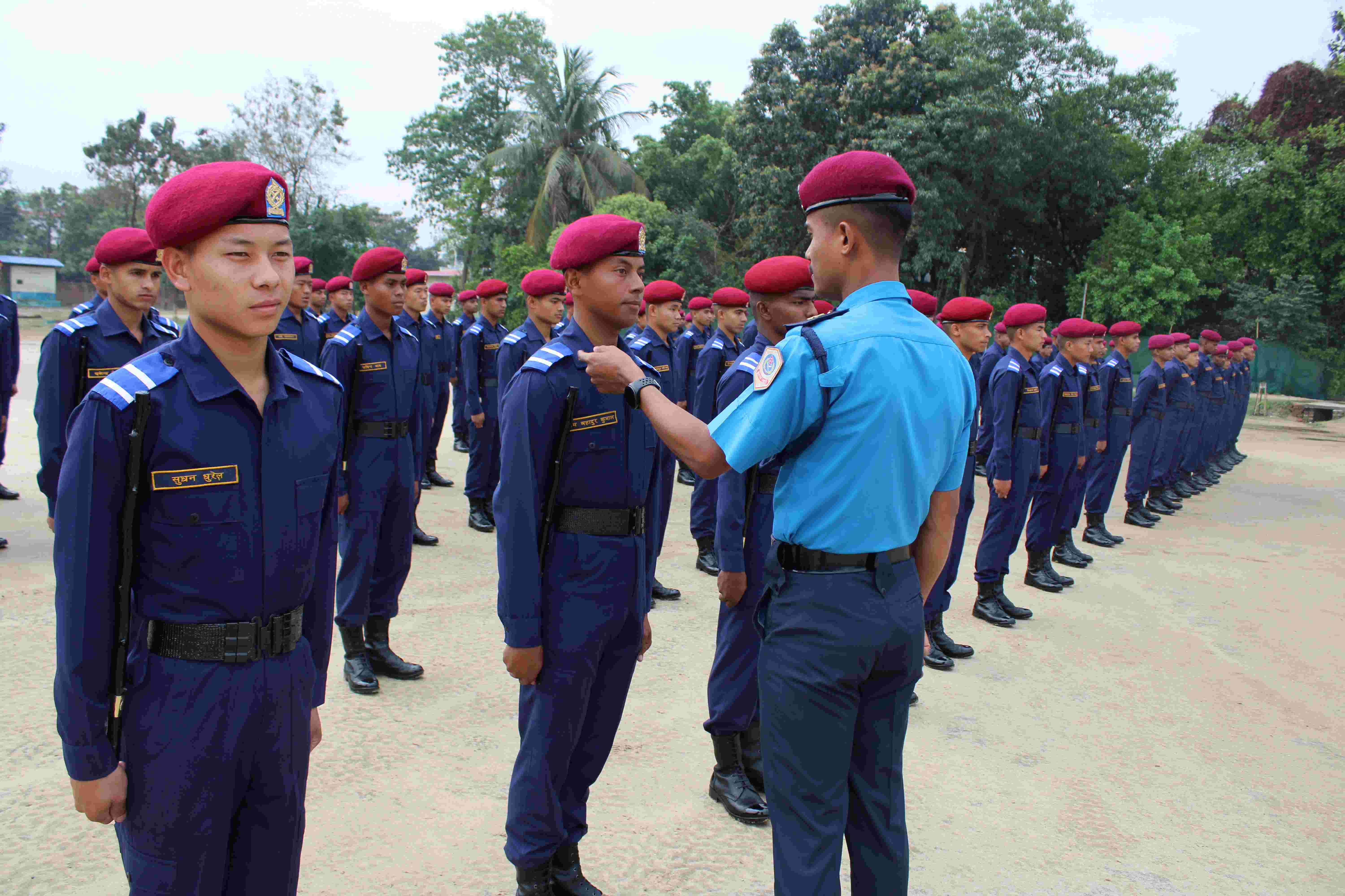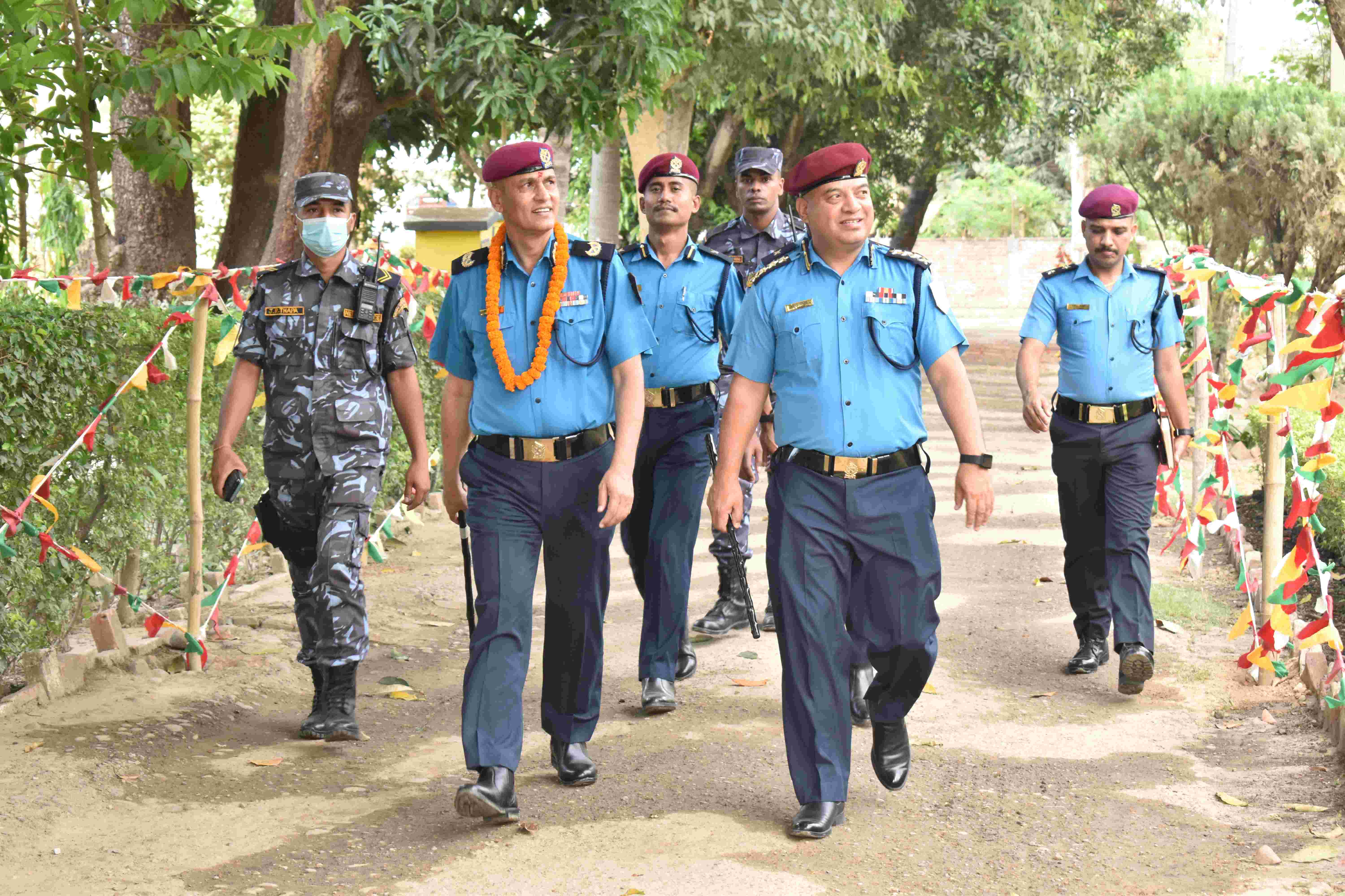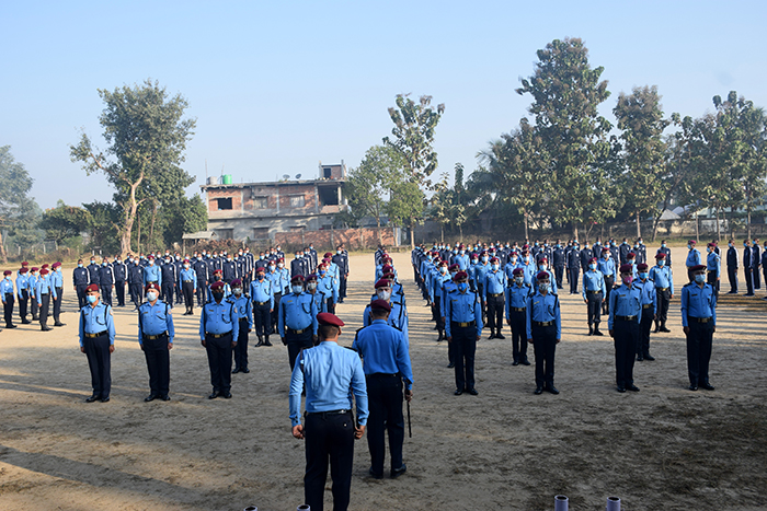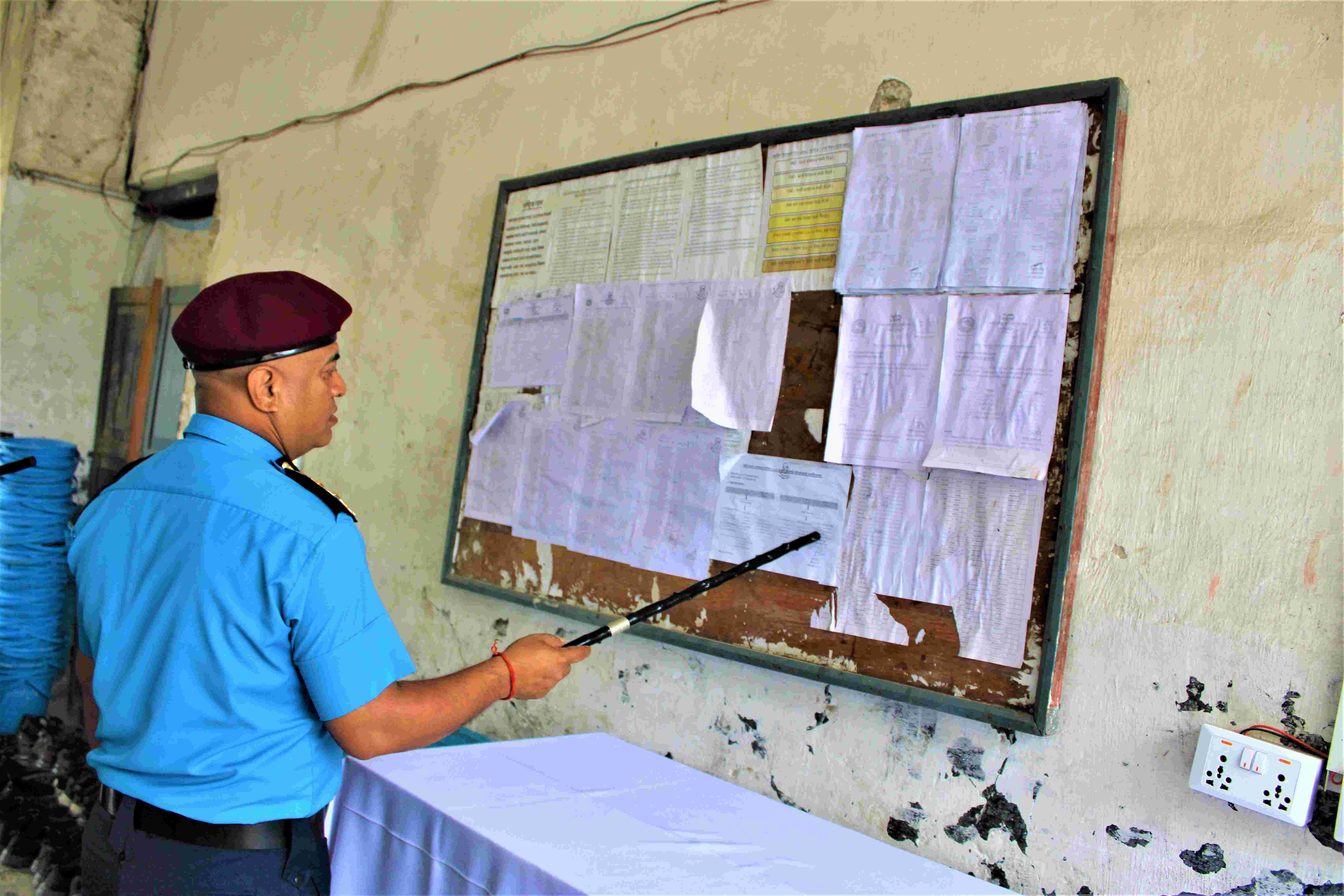 यस मधेश प्रदेश प्रहरी तालिम केन्द्र जनकपुर, हाल राजविराजमा कार्यरत प्रहरी कर्मचारीहरु तथा भौतिक संरचनालाई निरीक्षण गर्नुहुदै यस केन्द्रका समादेशक प्र.ब.उ. ईश्वर कार्की ज्यु ।