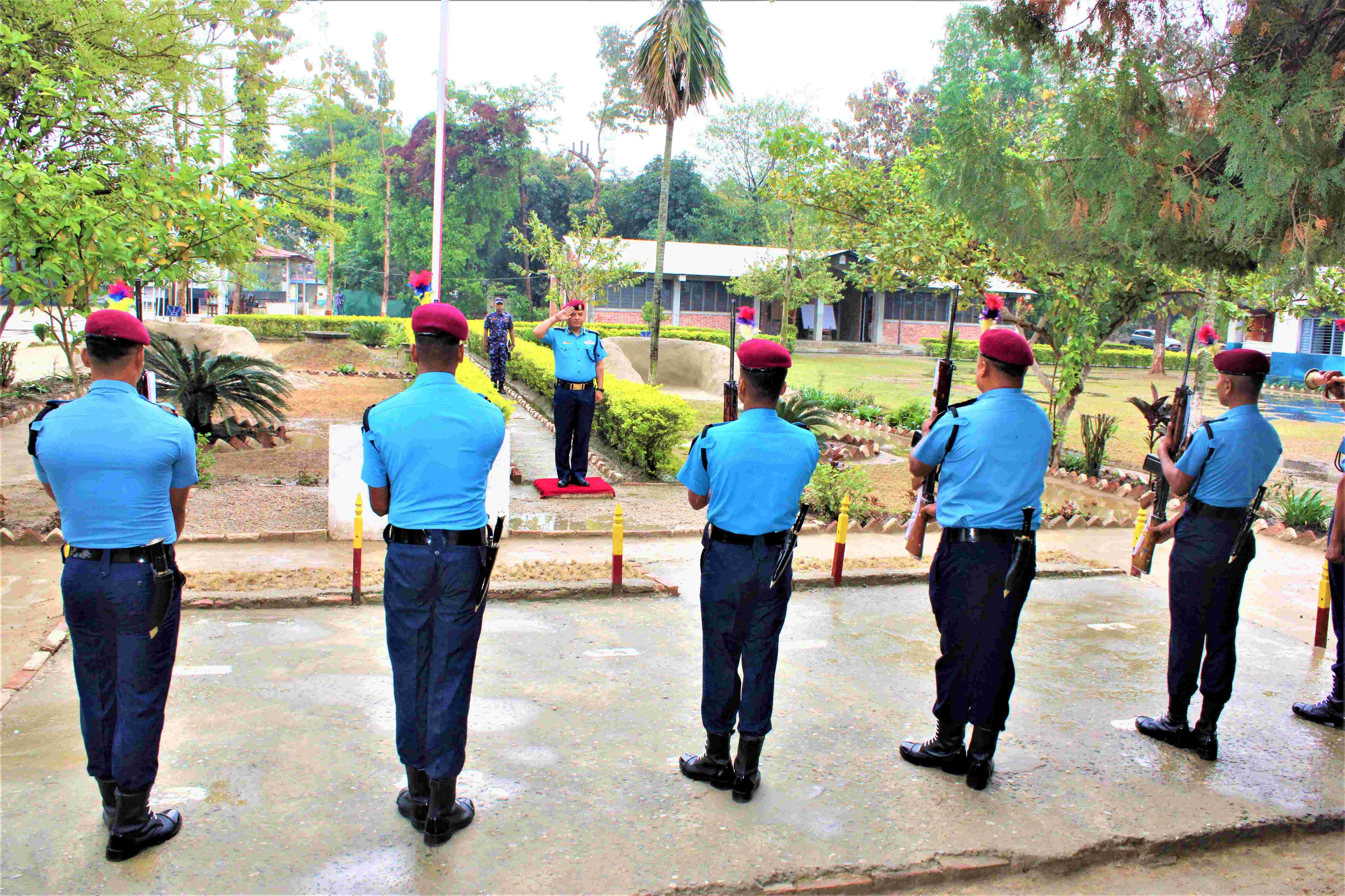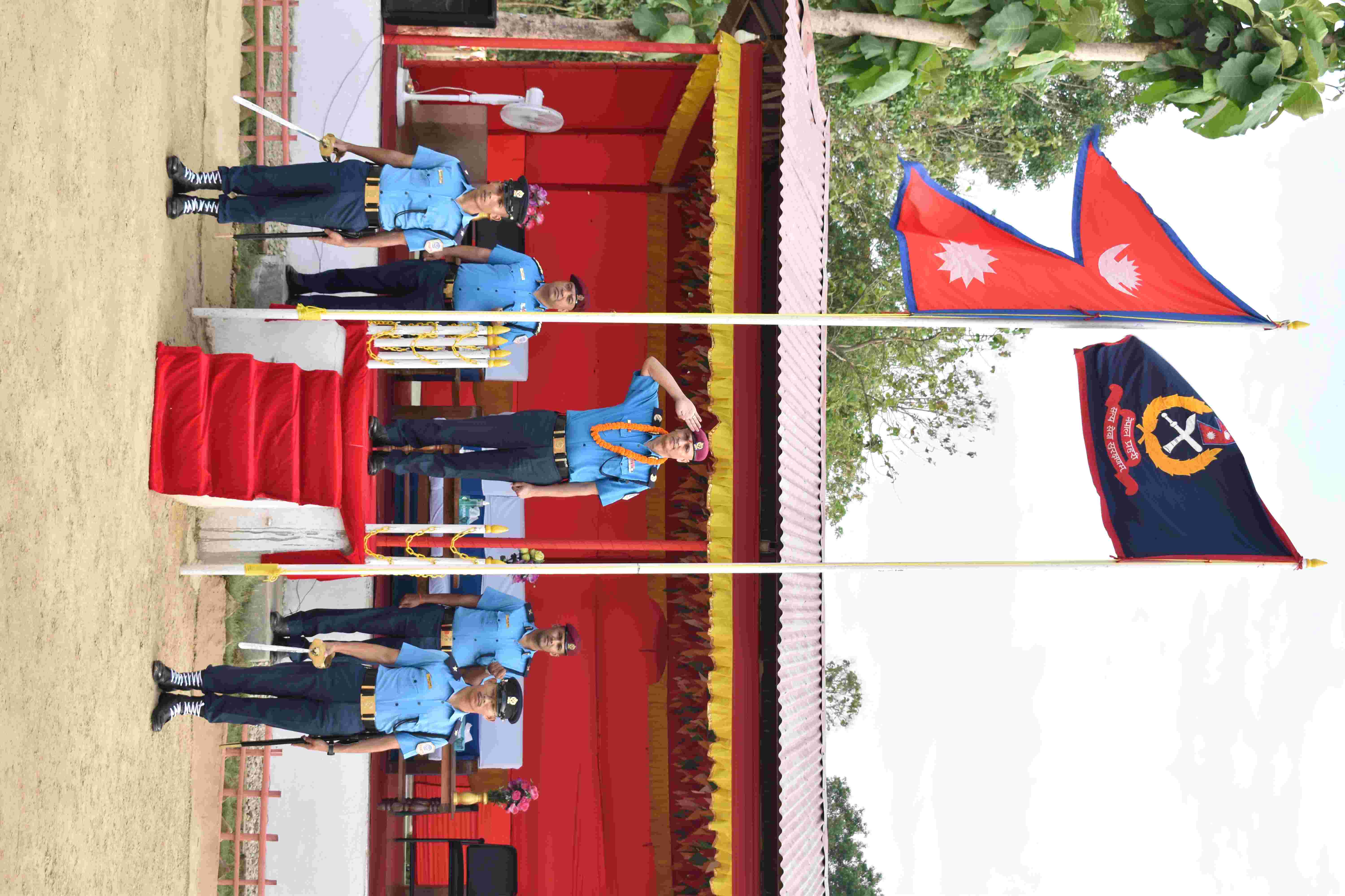 सलामी ग्रहण गर्नुहुदैँ मधेश प्रदेश प्रहरी प्रमुख प्र.ना.म.नि. जनक भट्टराई ज्यु । (मिति २०८०।०१।२१ गते)