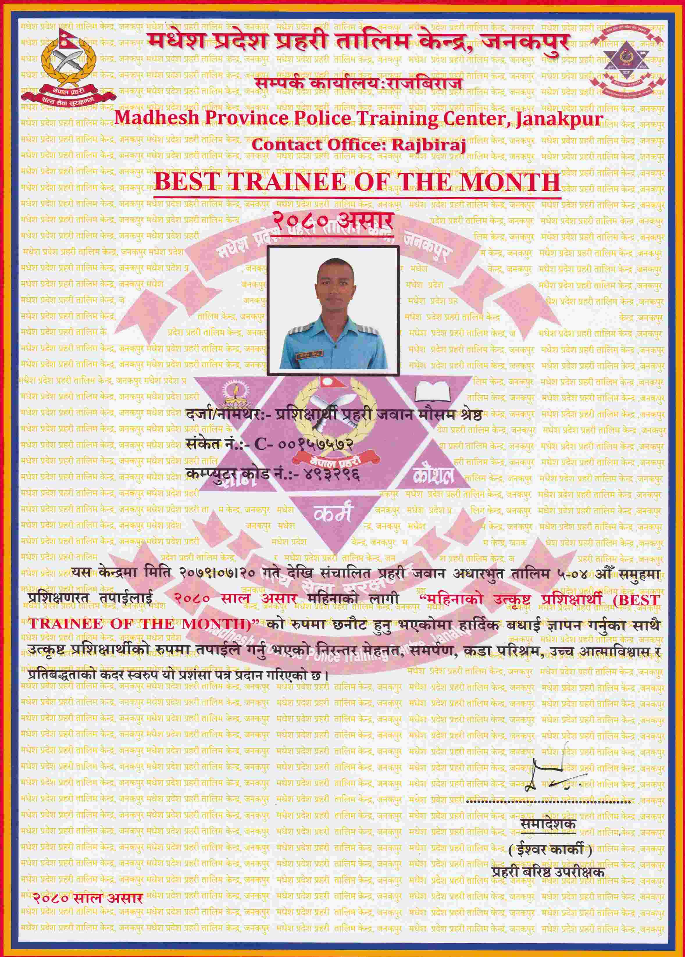 जेष्ठ महिनाको उत्कृष्ट प्रहरी कर्मचारी प्र.ज. आनन्द मोक्तान ।