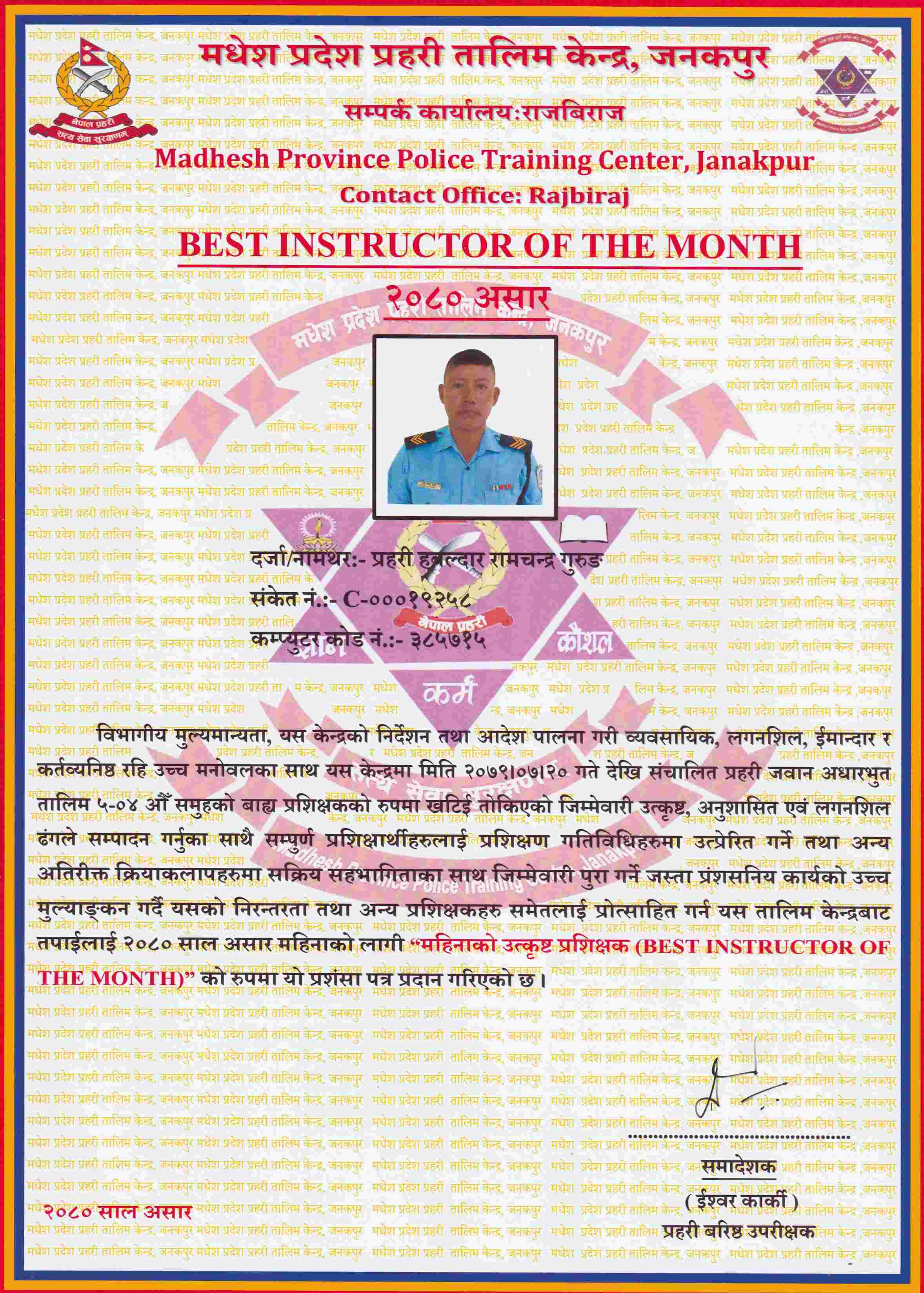 असार महिनाको उत्कृष्ट प्रशिक्षक प्र.ह.रामचन्द्र गुरुङ ।