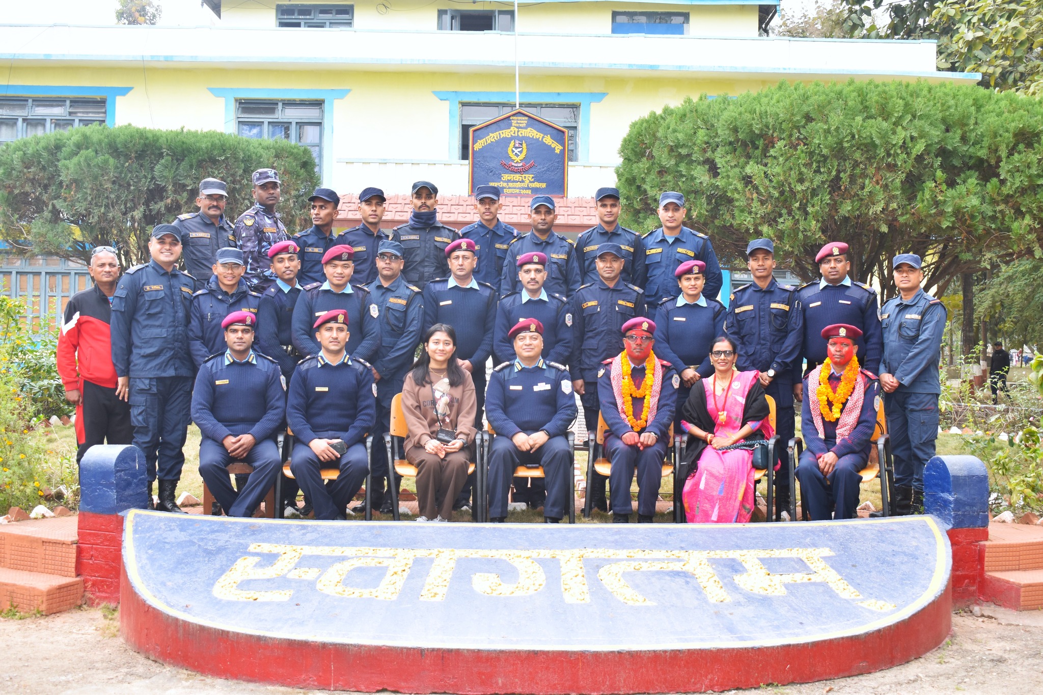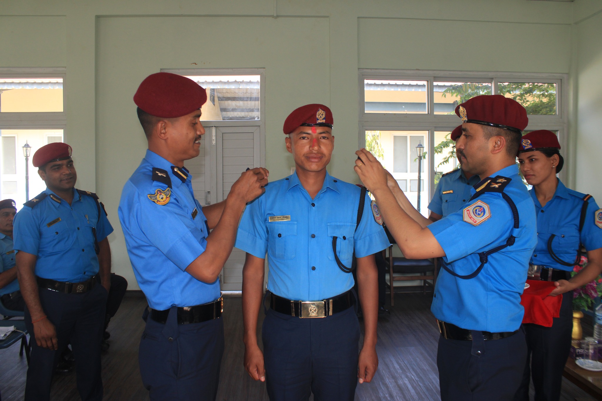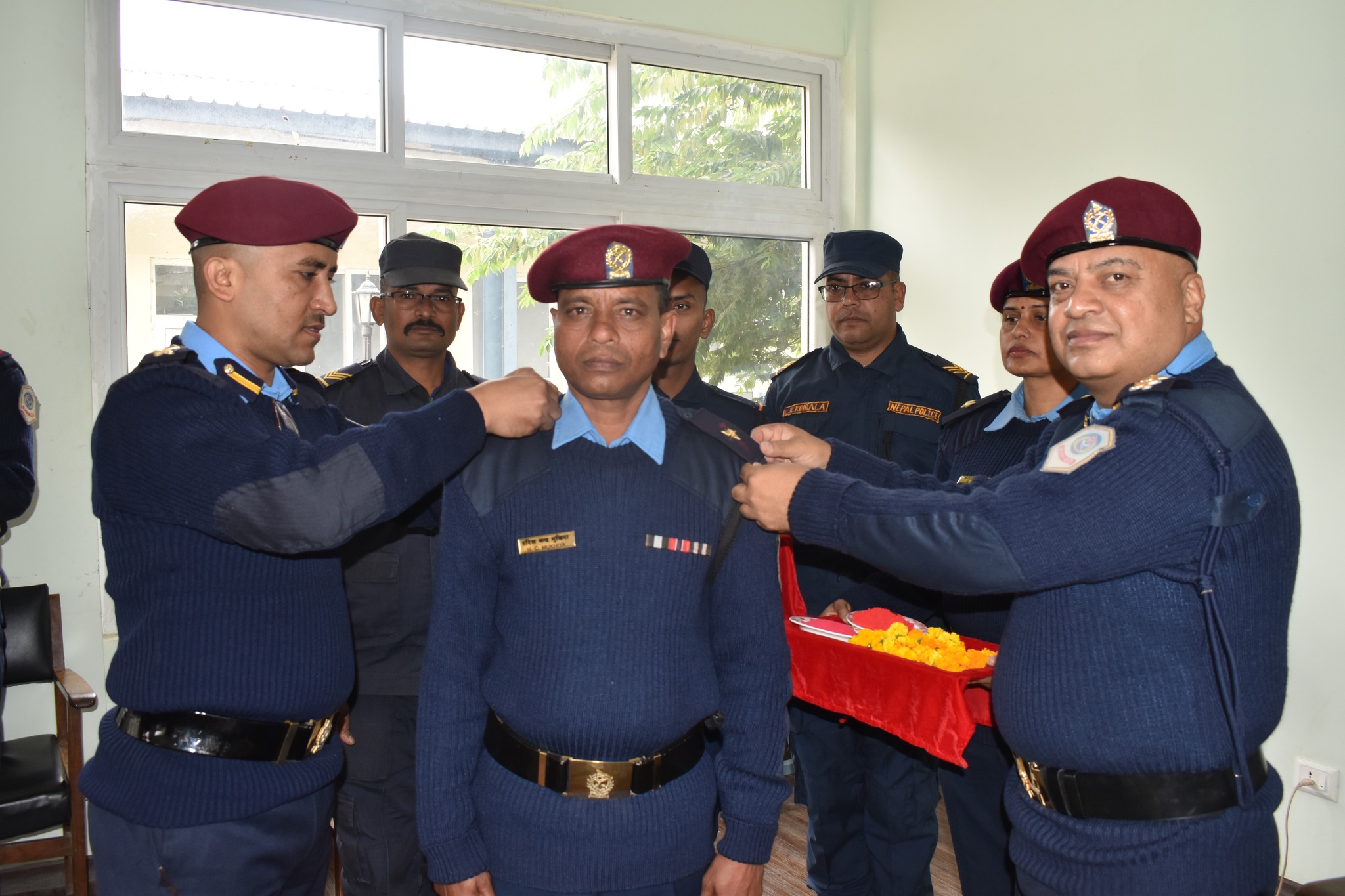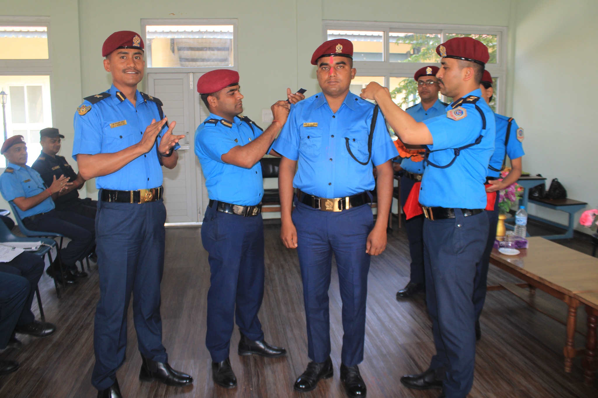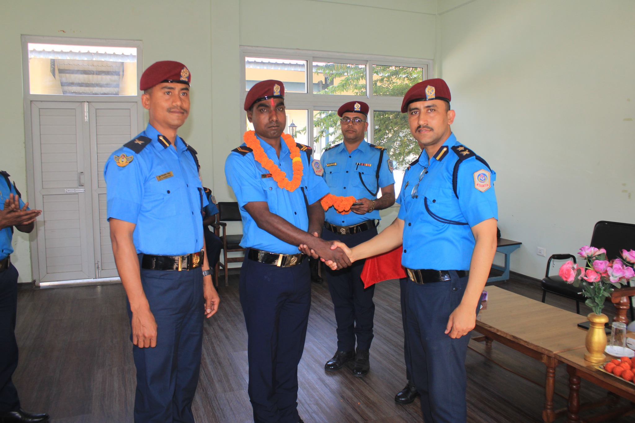 जनपद समूह तर्फको प्रहरी सहायक हवल्दार पदबाट बढुवा हुनु भएका प्रहरी हवल्दार अशोक कुमार यादवलाई आज एक कार्यक्रमका बीच यस केन्द्रका सह-समादेशक प्रहरी नायव उपरीक्षक श्री अनमोल खड्काज्यूले दर्ज्यानी चिन्हद्वारा सुशोभन गरी शुभकामना दिई निर्देशन सम्बोधन समेत गर्नुभयो ।